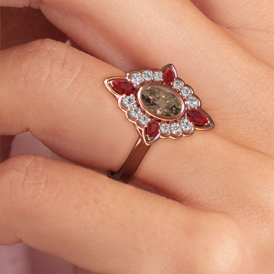 Dieser Verlobungsring aus 14 Karat Roségold heißt Door und hat einen 0.992 crt Braun Diamant. Ein außergewöhnlicher, Roségold Vintage Ring. Einer, der die Liebe Ihres Lebens mit Sicherheit wie ein Braun Diamant erstrahlen lässt! Das hoffen wir zu erreichen. Dieser Vintage Verlobungsring ist mit exquisiten Braun Diamant besetzt. Welchen Edelstein Sie aus unserer Auswahl haben möchten, liegt ganz bei Ihnen. Der Edelstein wird mit großer Sorgfalt ausgewählt. Denn wir glauben, dass Ihr gewagte Verlobungsring nur mit dem schönsten Edelstein gekrönt sein darf. Sehen Sie das auch so? Unser erfahrener Juwelier entwirft Ihren Ring in unserem eigenen Studio, wo der Braun Diamant mit großer Präzision eingefasst wird. Der Ring wird dann bearbeitet und poliert, bis er perfekt ist. Nichts als das Beste für die Liebe Ihres Lebens! Jedes Schmuckstück wird von unseren Meister-Goldschmieden in unserem eigenen Studio für Sie gefertigt.Nach Erhalt Ihrer Bestellung beginnen unsere Goldschmiede mit Leidenschaft den kreativen Prozess und fertigen Ihren Verlobungsring in unserem eigenen Studio. Da wir keine großen Lager haben, werden diese Kosten nicht an Sie weitergegeben. Unsere Preisgestaltung ist der Beweis dafür! Wir bieten Schmuck zum niedrigsten Preis, garantiert.Unser Team fügt unserer Online-Kollektion täglich neue Designs hinzu. Unsere Designer und Goldschmiede arbeiten zusammen, um das beste Design zu kreieren. Wir bemühen uns, eine vielfältige Kollektion von Schmuckstücken anzubieten. Vielleicht haben Sie ein bestimmtes Design im Sinn. Eines, dass Sie irgendwo gesehen haben. Gerne geben wir Ihnen eine kostenlose Beratung. Wir machen Ihnen ein Angebot, basierend auf einem fairen Preis/Leistungsverhältnis, das Sie verblüffen wird.Um es einfacher zu machen, bieten wir eine kostenlose 30-tägige Rücksendung.