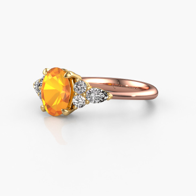 Dieser Ring aus 14 Karat Roségold heißt Melani OVL und hat 8x6 mm Citrin. Dieser elegante 14 Karat Roségold Cluster Verlobungsring ist ein wahres Kunstwerk! Die Ornamente werden mit viel Geduld und großer Leidenschaft gefertigt. Um diesen Ring mit großer Präzision zu schaffen, erfordert dieses Handwerk ein scharfes Auge und eine geschickte Hand. Eine Herausforderung, die bei unseren erfahrenen Juwelieren ein Feuer entfacht. Die exquisiten Citrin sind auf eine besondere Art und Weise gefasst, so dass sie noch mehr hervorstechen. Dies verleiht dem Ring eine noch glamourösere Erscheinung. Der Ring an sich ist schon wegen der Edelsteine einzigartig, die wir speziell für diesen Ring auswählen. Obendrein wählen Sie die Edelmetalle aus, mit denen Ihr einzigartiger Ring für die außergewöhnlichste Frau Ihres Lebens gemacht wird! Jedes Schmuckstück wird hergestellt von einem Team leidenschaftlicher Goldschmiede und Schmuckdesigner. Das wird Ihr Kronjuwel unbedingt zu einem Blickfang machen.Durch die Kombination modernster Technik mit uralter Handwerkskunst können wir alle Verlobungsringe in unserem eigenen Studio anfertigen. Jedes Schmuckstück wird auf Anfrage gefertigt. Das ist vorteilhaft, weil wir Ihnen dadurch einen Preis anbieten können, den Sie nirgendwo anders finden.Unsere Designer und Goldschmiede arbeiten jeden Tag zusammen und versuchen, neue Schmuckstücke zu kreieren. Vielleicht haben Sie irgendwo einen schönen, modische Verlobungsring gefunden, nach dem Ihr einzigartiger Ring gestaltet werden kann. Setzen Sie sich mit uns in Verbindung. Wir machen Ihnen ein Angebot, basierend auf einem fairen Preis/Leistungsverhältnis, das Sie begeistern wird.Um es einfacher zu machen, bieten wir eine kostenlose 30-tägige Rücksendung.