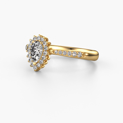 Der oben gezeigte Ring, mit dem Namen Tilly per 2, nennen wir einen Cluster Verlobungsring. Der Cluster Ring trägt einem zentralen Edelstein, umgeben von kleineren Steinen. Diese Version in 14 Karat Gold hat einen tropfen Diamant von tropfen als Mittelstein, umschlossen von kleineren Diamanten. Was diesen exklusive Gold Cluster Ring besonders macht, sind die kleinen Edelsteine rund um den zentralen Diamant, die wie eine schöne Blume geformt sind. Der umgebende Steinkranz umrahmt den Mittelstein so, dass er größer erscheint. Diese Art von Verlobungsring wird auch Blumen- oder Rosettenring genannt. Es ist sehr wichtig, dass die kleineren Diamanten identisch positioniert sind, so dass es kein Spiel im Licht, sondern eine perfekte Einheit ergibt. Unsere erfahrenen Juweliere erledigen diese Arbeit. Jeder einzelne Stein wird sorgfältig von Hand gesetzt. Während der Herstellung wird der Lichteinfall ständig überwacht, um sicherzustellen, dass der spezielle Cluster-Effekt noch sichtbar ist. Am Ende bekommen Sie den perfekten Verlobungsring mit einem strahlenden Diamant Edelstein Herzstück. Sie können sich die Wirkung eines solchen Ringes vorstellen, wenn Sie ihn an ihrem besonderen Tag für die Liebe Ihres Lebens zum Leuchten bringen. Jedes Schmuckstück wird nur für Sie persönlich hergestellt, mit Liebe zum Detail und Design.Nach Erhalt Ihrer Bestellung beginnen unsere Goldschmiede mit Leidenschaft den kreativen Prozess und fertigen Ihren Verlobungsring in unserem eigenen Studio. Da wir keine großen Lager haben, werden diese Kosten nicht an Sie weitergegeben. Unsere Preisgestaltung ist der Beweis dafür! Wir bieten Schmuck zum niedrigsten Preis, garantiert.Verschiedene Arten von neuen Ringen werden täglich von unserem Team angefertigt. Vielleicht haben Sie irgendwo einen Cluster Verlobungsring gefunden. Einen, den Sie Ihrem Liebsten schenken möchten. Bitte zögern Sie nicht, unseren Schmuckdesignern Ihre Gedanken und Ihr Design zu zeigen. Wir würden gerne Ihr Design in einen exklusive Verlobungsring verwandeln. Sie können die Entwicklungen Ihres Ringdesigns verfolgen, da wir sehr detaillierte 3D-Zeichnungen verwenden. Darüber hinaus können Sie einen Dummy des Designs bestellen. Ein Dummy ist ein Kunststoffring, der nach Ihrem Ringdesign gestaltet werden kann. Sie können ihn anprobieren und prüfen, ob der Verlobungsring Ihren Vorstellungen entspricht. Wir senden Ihnen gerne ein unverbindliches Angebot zu einem fairen Preis/Leistungsverhältnis. Das Angebot wird Sie angesichts der Qualität des Rings und der Edelsteine verblüffen.Um es einfacher zu machen, bieten wir eine kostenlose 30-tägige Rücksendung.