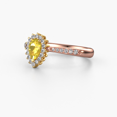 Der oben gezeigte Ring, mit dem Namen Tilly per 2, nennen wir einen Cluster Verlobungsring. Der Cluster Ring trägt einem zentralen Edelstein, umgeben von kleineren Steinen. Diese Version in 14 Karat Roségold hat einen tropfen Gelb Saphir von tropfen als Mittelstein, umschlossen von kleineren Diamanten. Was diesen exklusive Roségold Cluster Ring besonders macht, sind die kleinen Edelsteine rund um den zentralen Gelb Saphir, die wie eine schöne Blume geformt sind. Der umgebende Steinkranz umrahmt den Mittelstein so, dass er größer erscheint. Diese Art von Verlobungsring wird auch Blumen- oder Rosettenring genannt. Es ist sehr wichtig, dass die kleineren Gelb Saphir identisch positioniert sind, so dass es kein Spiel im Licht, sondern eine perfekte Einheit ergibt. Unsere erfahrenen Juweliere erledigen diese Arbeit. Jeder einzelne Stein wird sorgfältig von Hand gesetzt. Während der Herstellung wird der Lichteinfall ständig überwacht, um sicherzustellen, dass der spezielle Cluster-Effekt noch sichtbar ist. Am Ende bekommen Sie den perfekten Verlobungsring mit einem strahlenden Gelb Saphir Edelstein Herzstück. Sie können sich die Wirkung eines solchen Ringes vorstellen, wenn Sie ihn an ihrem besonderen Tag für die Liebe Ihres Lebens zum Leuchten bringen. Jedes Schmuckstück wird nur für Sie persönlich hergestellt, mit Liebe zum Detail und Design.Nach Erhalt Ihrer Bestellung beginnen unsere Goldschmiede mit Leidenschaft den kreativen Prozess und fertigen Ihren Verlobungsring in unserem eigenen Studio. Da wir keine großen Lager haben, werden diese Kosten nicht an Sie weitergegeben. Unsere Preisgestaltung ist der Beweis dafür! Wir bieten Schmuck zum niedrigsten Preis, garantiert.Verschiedene Arten von neuen Ringen werden täglich von unserem Team angefertigt. Vielleicht haben Sie irgendwo einen Cluster Verlobungsring gefunden. Einen, den Sie Ihrem Liebsten schenken möchten. Bitte zögern Sie nicht, unseren Schmuckdesignern Ihre Gedanken und Ihr Design zu zeigen. Wir würden gerne Ihr Design in einen exklusive Verlobungsring verwandeln. Sie können die Entwicklungen Ihres Ringdesigns verfolgen, da wir sehr detaillierte 3D-Zeichnungen verwenden. Darüber hinaus können Sie einen Dummy des Designs bestellen. Ein Dummy ist ein Kunststoffring, der nach Ihrem Ringdesign gestaltet werden kann. Sie können ihn anprobieren und prüfen, ob der Verlobungsring Ihren Vorstellungen entspricht. Wir senden Ihnen gerne ein unverbindliches Angebot zu einem fairen Preis/Leistungsverhältnis. Das Angebot wird Sie angesichts der Qualität des Rings und der Edelsteine verblüffen.Um es einfacher zu machen, bieten wir eine kostenlose 30-tägige Rücksendung.