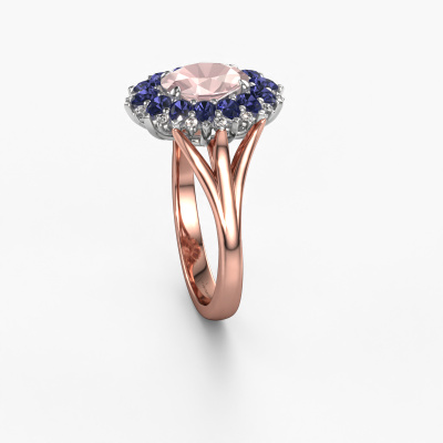Der oben gezeigte Ring, mit dem Namen Lidia, nennen wir einen Cluster Verlobungsring. Der Cluster Ring trägt einem zentralen Edelstein, umgeben von kleineren Steinen. Diese Version in 14 Karat Roségold hat einen oval Morganit Champagner von oval als Mittelstein, umschlossen von kleineren Saphir. Was diesen Vintage Roségold Cluster Ring besonders macht, sind die kleinen Edelsteine rund um den zentralen Morganit Champagner, die wie eine schöne Blume geformt sind. Der umgebende Steinkranz umrahmt den Mittelstein so, dass er größer erscheint. Diese Art von Verlobungsring wird auch Blumen- oder Rosettenring genannt. Es ist sehr wichtig, dass die kleineren Morganit Champagner identisch positioniert sind, so dass es kein Spiel im Licht, sondern eine perfekte Einheit ergibt. Unsere erfahrenen Juweliere erledigen diese Arbeit. Jeder einzelne Stein wird sorgfältig von Hand gesetzt. Während der Herstellung wird der Lichteinfall ständig überwacht, um sicherzustellen, dass der spezielle Cluster-Effekt noch sichtbar ist. Am Ende bekommen Sie den perfekten Verlobungsring mit einem strahlenden Morganit Champagner Edelstein Herzstück. Sie können sich die Wirkung eines solchen Ringes vorstellen, wenn Sie ihn an ihrem besonderen Tag für die Liebe Ihres Lebens zum Leuchten bringen. Jedes Schmuckstück wird hergestellt mit Leidenschaft und Liebe, von einem unserer Meister-Goldschmiede.Durch die Kombination modernster Technik mit uralter Handwerkskunst können wir alle Verlobungsringe in unserem eigenen Studio anfertigen. Jedes Schmuckstück wird auf Anfrage gefertigt. Das ist vorteilhaft, weil wir Ihnen dadurch einen Preis anbieten können, den Sie nirgendwo anders finden.Haben Sie irgendwo einen bestimmten Verlobungsring gefunden, den Sie Ihrem Liebsten schenken möchten? Sie können uns gerne sagen, was Sie wollen und wir werden Ihr Design in einen Einzigartigen Vintage Verlobungsring verwandeln. Sie können die Entwicklungen Ihres Ringdesigns verfolgen, da wir 3D-Zeichnungen verwenden. Das gibt Ihnen eine realistische Vorschau, wie Ihr Design aussehen wird. Sie können auch einen Dummy vorbestellen. Ein Dummy ist ein Kunststoffring, der nach Ihrem Ringdesign gestaltet werden kann. Sie können ihn anprobieren und prüfen, ob seine Breite und Größe für Sie geeignet sind. Wir senden Ihnen gerne ein unverbindliches Angebot zu einem fairen Preis/Leistungsverhältnis. Sie werden in Anbetracht der Qualität des Rings und der Edelsteine überrascht sein.Um es einfacher zu machen, bieten wir eine kostenlose 30-tägige Rücksendung.