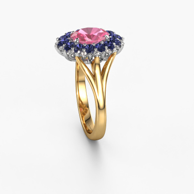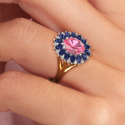 Der oben gezeigte Ring, mit dem Namen Lidia, nennen wir einen Cluster Verlobungsring. Der Cluster Ring trägt einem zentralen Edelstein, umgeben von kleineren Steinen. Diese Version in 14 Karat Gold hat einen oval Pink Saphir von oval als Mittelstein, umschlossen von kleineren Saphir. Was diesen Vintage Gold Cluster Ring besonders macht, sind die kleinen Edelsteine rund um den zentralen Pink Saphir, die wie eine schöne Blume geformt sind. Der umgebende Steinkranz umrahmt den Mittelstein so, dass er größer erscheint. Diese Art von Verlobungsring wird auch Blumen- oder Rosettenring genannt. Es ist sehr wichtig, dass die kleineren Pink Saphir identisch positioniert sind, so dass es kein Spiel im Licht, sondern eine perfekte Einheit ergibt. Unsere erfahrenen Juweliere erledigen diese Arbeit. Jeder einzelne Stein wird sorgfältig von Hand gesetzt. Während der Herstellung wird der Lichteinfall ständig überwacht, um sicherzustellen, dass der spezielle Cluster-Effekt noch sichtbar ist. Am Ende bekommen Sie den perfekten Verlobungsring mit einem strahlenden Pink Saphir Edelstein Herzstück. Sie können sich die Wirkung eines solchen Ringes vorstellen, wenn Sie ihn an ihrem besonderen Tag für die Liebe Ihres Lebens zum Leuchten bringen. Jedes Schmuckstück wird hergestellt mit Leidenschaft und Liebe, von einem unserer Meister-Goldschmiede.Durch die Kombination modernster Technik mit uralter Handwerkskunst können wir alle Verlobungsringe in unserem eigenen Studio anfertigen. Jedes Schmuckstück wird auf Anfrage gefertigt. Das ist vorteilhaft, weil wir Ihnen dadurch einen Preis anbieten können, den Sie nirgendwo anders finden.Haben Sie irgendwo einen bestimmten Verlobungsring gefunden, den Sie Ihrem Liebsten schenken möchten? Sie können uns gerne sagen, was Sie wollen und wir werden Ihr Design in einen Einzigartigen Vintage Verlobungsring verwandeln. Sie können die Entwicklungen Ihres Ringdesigns verfolgen, da wir 3D-Zeichnungen verwenden. Das gibt Ihnen eine realistische Vorschau, wie Ihr Design aussehen wird. Sie können auch einen Dummy vorbestellen. Ein Dummy ist ein Kunststoffring, der nach Ihrem Ringdesign gestaltet werden kann. Sie können ihn anprobieren und prüfen, ob seine Breite und Größe für Sie geeignet sind. Wir senden Ihnen gerne ein unverbindliches Angebot zu einem fairen Preis/Leistungsverhältnis. Sie werden in Anbetracht der Qualität des Rings und der Edelsteine überrascht sein.Um es einfacher zu machen, bieten wir eine kostenlose 30-tägige Rücksendung.