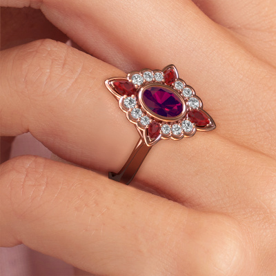Dieser Verlobungsring aus 14 Karat Roségold heißt Door und hat einen 7x5 mm Rhodolit. Ein außergewöhnlicher, Roségold Vintage Ring. Einer, der die Liebe Ihres Lebens mit Sicherheit wie ein Rhodolit erstrahlen lässt! Das hoffen wir zu erreichen. Dieser Vintage Verlobungsring ist mit exquisiten Rhodolit besetzt. Welchen Edelstein Sie aus unserer Auswahl haben möchten, liegt ganz bei Ihnen. Der Edelstein wird mit großer Sorgfalt ausgewählt. Denn wir glauben, dass Ihr gewagte Verlobungsring nur mit dem schönsten Edelstein gekrönt sein darf. Sehen Sie das auch so? Unser erfahrener Juwelier entwirft Ihren Ring in unserem eigenen Studio, wo der Rhodolit mit großer Präzision eingefasst wird. Der Ring wird dann bearbeitet und poliert, bis er perfekt ist. Nichts als das Beste für die Liebe Ihres Lebens! Jedes Schmuckstück wird von unseren Meister-Goldschmieden in unserem eigenen Studio für Sie gefertigt.Nach Erhalt Ihrer Bestellung beginnen unsere Goldschmiede mit Leidenschaft den kreativen Prozess und fertigen Ihren Verlobungsring in unserem eigenen Studio. Da wir keine großen Lager haben, werden diese Kosten nicht an Sie weitergegeben. Unsere Preisgestaltung ist der Beweis dafür! Wir bieten Schmuck zum niedrigsten Preis, garantiert.Unser Team fügt unserer Online-Kollektion täglich neue Designs hinzu. Unsere Designer und Goldschmiede arbeiten zusammen, um das beste Design zu kreieren. Wir bemühen uns, eine vielfältige Kollektion von Schmuckstücken anzubieten. Vielleicht haben Sie ein bestimmtes Design im Sinn. Eines, dass Sie irgendwo gesehen haben. Gerne geben wir Ihnen eine kostenlose Beratung. Wir machen Ihnen ein Angebot, basierend auf einem fairen Preis/Leistungsverhältnis, das Sie verblüffen wird.Um es einfacher zu machen, bieten wir eine kostenlose 30-tägige Rücksendung.