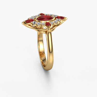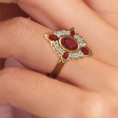 Dieser Verlobungsring aus 14 Karat Gold heißt Door und hat einen 7x5 mm Rubin. Ein außergewöhnlicher, Gold Vintage Ring. Einer, der die Liebe Ihres Lebens mit Sicherheit wie ein Rubin erstrahlen lässt! Das hoffen wir zu erreichen. Dieser Vintage Verlobungsring ist mit exquisiten Rubin besetzt. Welchen Edelstein Sie aus unserer Auswahl haben möchten, liegt ganz bei Ihnen. Der Edelstein wird mit großer Sorgfalt ausgewählt. Denn wir glauben, dass Ihr gewagte Verlobungsring nur mit dem schönsten Edelstein gekrönt sein darf. Sehen Sie das auch so? Unser erfahrener Juwelier entwirft Ihren Ring in unserem eigenen Studio, wo der Rubin mit großer Präzision eingefasst wird. Der Ring wird dann bearbeitet und poliert, bis er perfekt ist. Nichts als das Beste für die Liebe Ihres Lebens! Jedes Schmuckstück wird von unseren Meister-Goldschmieden in unserem eigenen Studio für Sie gefertigt.Nach Erhalt Ihrer Bestellung beginnen unsere Goldschmiede mit Leidenschaft den kreativen Prozess und fertigen Ihren Verlobungsring in unserem eigenen Studio. Da wir keine großen Lager haben, werden diese Kosten nicht an Sie weitergegeben. Unsere Preisgestaltung ist der Beweis dafür! Wir bieten Schmuck zum niedrigsten Preis, garantiert.Unser Team fügt unserer Online-Kollektion täglich neue Designs hinzu. Unsere Designer und Goldschmiede arbeiten zusammen, um das beste Design zu kreieren. Wir bemühen uns, eine vielfältige Kollektion von Schmuckstücken anzubieten. Vielleicht haben Sie ein bestimmtes Design im Sinn. Eines, dass Sie irgendwo gesehen haben. Gerne geben wir Ihnen eine kostenlose Beratung. Wir machen Ihnen ein Angebot, basierend auf einem fairen Preis/Leistungsverhältnis, das Sie verblüffen wird.Um es einfacher zu machen, bieten wir eine kostenlose 30-tägige Rücksendung.