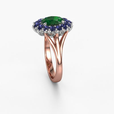Der oben gezeigte Ring, mit dem Namen Lidia, nennen wir einen Cluster Verlobungsring. Der Cluster Ring trägt einem zentralen Edelstein, umgeben von kleineren Steinen. Diese Version in 14 Karat Roségold hat einen oval Smaragd von oval als Mittelstein, umschlossen von kleineren Saphir. Was diesen Vintage Roségold Cluster Ring besonders macht, sind die kleinen Edelsteine rund um den zentralen Smaragd, die wie eine schöne Blume geformt sind. Der umgebende Steinkranz umrahmt den Mittelstein so, dass er größer erscheint. Diese Art von Verlobungsring wird auch Blumen- oder Rosettenring genannt. Es ist sehr wichtig, dass die kleineren Smaragd identisch positioniert sind, so dass es kein Spiel im Licht, sondern eine perfekte Einheit ergibt. Unsere erfahrenen Juweliere erledigen diese Arbeit. Jeder einzelne Stein wird sorgfältig von Hand gesetzt. Während der Herstellung wird der Lichteinfall ständig überwacht, um sicherzustellen, dass der spezielle Cluster-Effekt noch sichtbar ist. Am Ende bekommen Sie den perfekten Verlobungsring mit einem strahlenden Smaragd Edelstein Herzstück. Sie können sich die Wirkung eines solchen Ringes vorstellen, wenn Sie ihn an ihrem besonderen Tag für die Liebe Ihres Lebens zum Leuchten bringen. Jedes Schmuckstück wird hergestellt mit Leidenschaft und Liebe, von einem unserer Meister-Goldschmiede.Durch die Kombination modernster Technik mit uralter Handwerkskunst können wir alle Verlobungsringe in unserem eigenen Studio anfertigen. Jedes Schmuckstück wird auf Anfrage gefertigt. Das ist vorteilhaft, weil wir Ihnen dadurch einen Preis anbieten können, den Sie nirgendwo anders finden.Haben Sie irgendwo einen bestimmten Verlobungsring gefunden, den Sie Ihrem Liebsten schenken möchten? Sie können uns gerne sagen, was Sie wollen und wir werden Ihr Design in einen Einzigartigen Vintage Verlobungsring verwandeln. Sie können die Entwicklungen Ihres Ringdesigns verfolgen, da wir 3D-Zeichnungen verwenden. Das gibt Ihnen eine realistische Vorschau, wie Ihr Design aussehen wird. Sie können auch einen Dummy vorbestellen. Ein Dummy ist ein Kunststoffring, der nach Ihrem Ringdesign gestaltet werden kann. Sie können ihn anprobieren und prüfen, ob seine Breite und Größe für Sie geeignet sind. Wir senden Ihnen gerne ein unverbindliches Angebot zu einem fairen Preis/Leistungsverhältnis. Sie werden in Anbetracht der Qualität des Rings und der Edelsteine überrascht sein.Um es einfacher zu machen, bieten wir eine kostenlose 30-tägige Rücksendung.