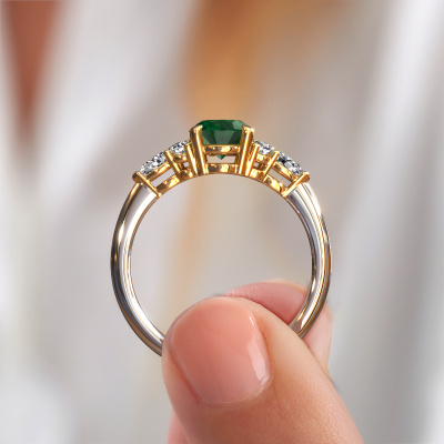 Dieser Ring aus 14 Karat Weißgold heißt Melani OVL und hat 8x6 mm Smaragd. Dieser elegante 14 Karat Weißgold Cluster Verlobungsring ist ein wahres Kunstwerk! Die Ornamente werden mit viel Geduld und großer Leidenschaft gefertigt. Um diesen Ring mit großer Präzision zu schaffen, erfordert dieses Handwerk ein scharfes Auge und eine geschickte Hand. Eine Herausforderung, die bei unseren erfahrenen Juwelieren ein Feuer entfacht. Die exquisiten Smaragd sind auf eine besondere Art und Weise gefasst, so dass sie noch mehr hervorstechen. Dies verleiht dem Ring eine noch glamourösere Erscheinung. Der Ring an sich ist schon wegen der Edelsteine einzigartig, die wir speziell für diesen Ring auswählen. Obendrein wählen Sie die Edelmetalle aus, mit denen Ihr einzigartiger Ring für die außergewöhnlichste Frau Ihres Lebens gemacht wird! Jedes Schmuckstück wird hergestellt von einem Team leidenschaftlicher Goldschmiede und Schmuckdesigner. Das wird Ihr Kronjuwel unbedingt zu einem Blickfang machen.Durch die Kombination modernster Technik mit uralter Handwerkskunst können wir alle Verlobungsringe in unserem eigenen Studio anfertigen. Jedes Schmuckstück wird auf Anfrage gefertigt. Das ist vorteilhaft, weil wir Ihnen dadurch einen Preis anbieten können, den Sie nirgendwo anders finden.Unsere Designer und Goldschmiede arbeiten jeden Tag zusammen und versuchen, neue Schmuckstücke zu kreieren. Vielleicht haben Sie irgendwo einen schönen, modische Verlobungsring gefunden, nach dem Ihr einzigartiger Ring gestaltet werden kann. Setzen Sie sich mit uns in Verbindung. Wir machen Ihnen ein Angebot, basierend auf einem fairen Preis/Leistungsverhältnis, das Sie begeistern wird.Um es einfacher zu machen, bieten wir eine kostenlose 30-tägige Rücksendung.