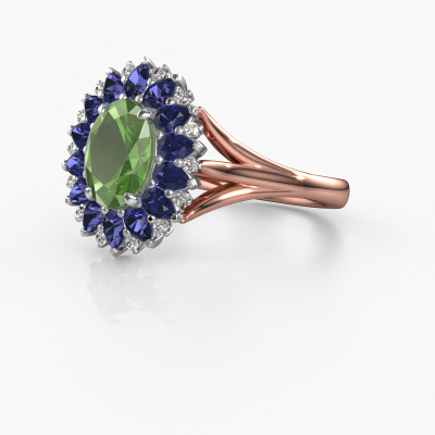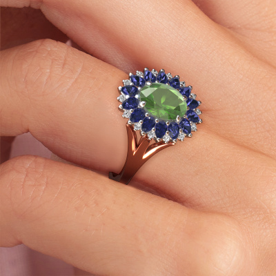 Der oben gezeigte Ring, mit dem Namen Lidia, nennen wir einen Cluster Verlobungsring. Der Cluster Ring trägt einem zentralen Edelstein, umgeben von kleineren Steinen. Diese Version in 14 Karat Roségold hat einen oval Turmalin grün von oval als Mittelstein, umschlossen von kleineren Saphir. Was diesen Vintage Roségold Cluster Ring besonders macht, sind die kleinen Edelsteine rund um den zentralen Turmalin grün, die wie eine schöne Blume geformt sind. Der umgebende Steinkranz umrahmt den Mittelstein so, dass er größer erscheint. Diese Art von Verlobungsring wird auch Blumen- oder Rosettenring genannt. Es ist sehr wichtig, dass die kleineren grüner Turmalin identisch positioniert sind, so dass es kein Spiel im Licht, sondern eine perfekte Einheit ergibt. Unsere erfahrenen Juweliere erledigen diese Arbeit. Jeder einzelne Stein wird sorgfältig von Hand gesetzt. Während der Herstellung wird der Lichteinfall ständig überwacht, um sicherzustellen, dass der spezielle Cluster-Effekt noch sichtbar ist. Am Ende bekommen Sie den perfekten Verlobungsring mit einem strahlenden Turmalin grün Edelstein Herzstück. Sie können sich die Wirkung eines solchen Ringes vorstellen, wenn Sie ihn an ihrem besonderen Tag für die Liebe Ihres Lebens zum Leuchten bringen. Jedes Schmuckstück wird hergestellt mit Leidenschaft und Liebe, von einem unserer Meister-Goldschmiede.Durch die Kombination modernster Technik mit uralter Handwerkskunst können wir alle Verlobungsringe in unserem eigenen Studio anfertigen. Jedes Schmuckstück wird auf Anfrage gefertigt. Das ist vorteilhaft, weil wir Ihnen dadurch einen Preis anbieten können, den Sie nirgendwo anders finden.Haben Sie irgendwo einen bestimmten Verlobungsring gefunden, den Sie Ihrem Liebsten schenken möchten? Sie können uns gerne sagen, was Sie wollen und wir werden Ihr Design in einen Einzigartigen Vintage Verlobungsring verwandeln. Sie können die Entwicklungen Ihres Ringdesigns verfolgen, da wir 3D-Zeichnungen verwenden. Das gibt Ihnen eine realistische Vorschau, wie Ihr Design aussehen wird. Sie können auch einen Dummy vorbestellen. Ein Dummy ist ein Kunststoffring, der nach Ihrem Ringdesign gestaltet werden kann. Sie können ihn anprobieren und prüfen, ob seine Breite und Größe für Sie geeignet sind. Wir senden Ihnen gerne ein unverbindliches Angebot zu einem fairen Preis/Leistungsverhältnis. Sie werden in Anbetracht der Qualität des Rings und der Edelsteine überrascht sein.Um es einfacher zu machen, bieten wir eine kostenlose 30-tägige Rücksendung.