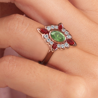 Dieser Verlobungsring aus 14 Karat Roségold heißt Door und hat einen 7x5 mm Turmalin grün. Ein außergewöhnlicher, Roségold Vintage Ring. Einer, der die Liebe Ihres Lebens mit Sicherheit wie ein Turmalin grün erstrahlen lässt! Das hoffen wir zu erreichen. Dieser Vintage Verlobungsring ist mit exquisiten Turmalin grün besetzt. Welchen Edelstein Sie aus unserer Auswahl haben möchten, liegt ganz bei Ihnen. Der Edelstein wird mit großer Sorgfalt ausgewählt. Denn wir glauben, dass Ihr gewagte Verlobungsring nur mit dem schönsten Edelstein gekrönt sein darf. Sehen Sie das auch so? Unser erfahrener Juwelier entwirft Ihren Ring in unserem eigenen Studio, wo der Turmalin grün mit großer Präzision eingefasst wird. Der Ring wird dann bearbeitet und poliert, bis er perfekt ist. Nichts als das Beste für die Liebe Ihres Lebens! Jedes Schmuckstück wird von unseren Meister-Goldschmieden in unserem eigenen Studio für Sie gefertigt.Nach Erhalt Ihrer Bestellung beginnen unsere Goldschmiede mit Leidenschaft den kreativen Prozess und fertigen Ihren Verlobungsring in unserem eigenen Studio. Da wir keine großen Lager haben, werden diese Kosten nicht an Sie weitergegeben. Unsere Preisgestaltung ist der Beweis dafür! Wir bieten Schmuck zum niedrigsten Preis, garantiert.Unser Team fügt unserer Online-Kollektion täglich neue Designs hinzu. Unsere Designer und Goldschmiede arbeiten zusammen, um das beste Design zu kreieren. Wir bemühen uns, eine vielfältige Kollektion von Schmuckstücken anzubieten. Vielleicht haben Sie ein bestimmtes Design im Sinn. Eines, dass Sie irgendwo gesehen haben. Gerne geben wir Ihnen eine kostenlose Beratung. Wir machen Ihnen ein Angebot, basierend auf einem fairen Preis/Leistungsverhältnis, das Sie verblüffen wird.Um es einfacher zu machen, bieten wir eine kostenlose 30-tägige Rücksendung.