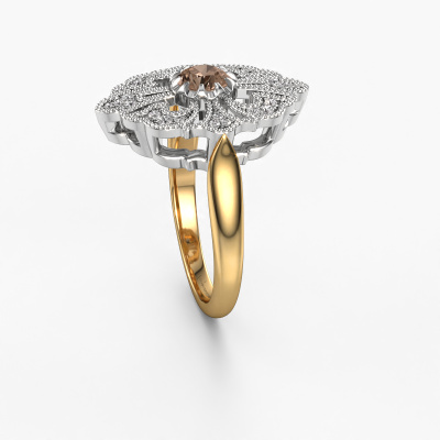 Dieser graziöse Verlobungsring aus 14 Karat Gold heißt Naida und hat 0.649 crt Braun Diamant. Ist Ihre Freundin von Vintage begeistert? Dann wird dieser Gold Verlobungsring sicherlich perfekt zu ihrem Stil passen. Ein trendiger Ring mit einem Hauch von klassischem Schmuck. Ein wirklich atemberaubendes, romantisches Design! Vor allem, wenn Sie den Ring nach ihren Wünschen anpassen. Dieser Vintage Cluster Verlobungsring ist mit atemberaubenden Braune Diamanten besetzt. Wie Sie sehen können, sind Sie der Boss bei der Auswahl des Edelsteins, der am besten zu Ihrer Freundin passt. Jeder Edelstein wird sorgfältig von unseren Händlern ausgewählt, die auf der ganzen Welt verteilt sind. Nichts als die besten Edelsteine für unseren erfahrenen Juwelier! Schließlich ist es seine Krönung! Jedes Schmuckstück wird von unseren Meister-Goldschmieden in unserem eigenen Studio für Sie gefertigt.Durch die Kombination modernster Technik mit uralter Handwerkskunst können wir alle Verlobungsringe in unserem eigenen Studio anfertigen. Jedes Schmuckstück wird auf Anfrage gefertigt. Das ist vorteilhaft, weil wir Ihnen dadurch einen Preis anbieten können, den Sie nirgendwo anders finden.Haben Sie einen bestimmten Ring im Sinn? Eines, dass Sie irgendwo gesehen haben. Bitte zögern Sie nicht, uns zu sagen, was Sie wollen und wir werden Ihr Design in einen Einzigartigen Verlobungsring verwandeln. Sie können die Entwicklungen Ihres Ringdesigns verfolgen, da wir 3D-Zeichnungen verwenden. Das gibt Ihnen eine realistische Vorschau Ihres Designs. Wir senden Ihnen gerne ein unverbindliches Angebot zu einem fairen Preis/Leistungsverhältnis. Es wird Sie erstaunen.Um es einfacher zu machen, bieten wir eine kostenlose 30-tägige Rücksendung.
