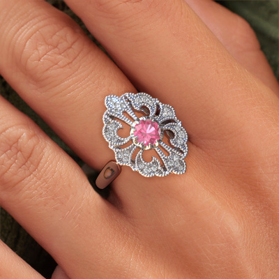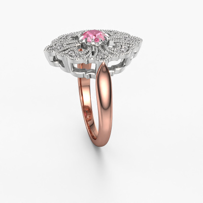 Dieser graziöse Verlobungsring aus 14 Karat Roségold heißt Naida und hat 5 mm Pink Saphir. Ist Ihre Freundin von Vintage begeistert? Dann wird dieser Roségold Verlobungsring sicherlich perfekt zu ihrem Stil passen. Ein trendiger Ring mit einem Hauch von klassischem Schmuck. Ein wirklich atemberaubendes, romantisches Design! Vor allem, wenn Sie den Ring nach ihren Wünschen anpassen. Dieser Vintage Cluster Verlobungsring ist mit atemberaubenden Pink Saphir besetzt. Wie Sie sehen können, sind Sie der Boss bei der Auswahl des Edelsteins, der am besten zu Ihrer Freundin passt. Jeder Edelstein wird sorgfältig von unseren Händlern ausgewählt, die auf der ganzen Welt verteilt sind. Nichts als die besten Edelsteine für unseren erfahrenen Juwelier! Schließlich ist es seine Krönung! Jedes Schmuckstück wird von unseren Meister-Goldschmieden in unserem eigenen Studio für Sie gefertigt.Durch die Kombination modernster Technik mit uralter Handwerkskunst können wir alle Verlobungsringe in unserem eigenen Studio anfertigen. Jedes Schmuckstück wird auf Anfrage gefertigt. Das ist vorteilhaft, weil wir Ihnen dadurch einen Preis anbieten können, den Sie nirgendwo anders finden.Haben Sie einen bestimmten Ring im Sinn? Eines, dass Sie irgendwo gesehen haben. Bitte zögern Sie nicht, uns zu sagen, was Sie wollen und wir werden Ihr Design in einen Einzigartigen Verlobungsring verwandeln. Sie können die Entwicklungen Ihres Ringdesigns verfolgen, da wir 3D-Zeichnungen verwenden. Das gibt Ihnen eine realistische Vorschau Ihres Designs. Wir senden Ihnen gerne ein unverbindliches Angebot zu einem fairen Preis/Leistungsverhältnis. Es wird Sie erstaunen.Um es einfacher zu machen, bieten wir eine kostenlose 30-tägige Rücksendung.
