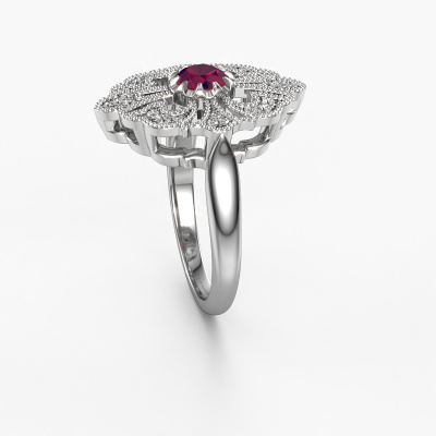 Dieser graziöse Verlobungsring aus 14 Karat Weißgold heißt Naida und hat 5 mm Rhodolit. Ist Ihre Freundin von Vintage begeistert? Dann wird dieser Weißgold Verlobungsring sicherlich perfekt zu ihrem Stil passen. Ein trendiger Ring mit einem Hauch von klassischem Schmuck. Ein wirklich atemberaubendes, romantisches Design! Vor allem, wenn Sie den Ring nach ihren Wünschen anpassen. Dieser Vintage Cluster Verlobungsring ist mit atemberaubenden Rhodolit besetzt. Wie Sie sehen können, sind Sie der Boss bei der Auswahl des Edelsteins, der am besten zu Ihrer Freundin passt. Jeder Edelstein wird sorgfältig von unseren Händlern ausgewählt, die auf der ganzen Welt verteilt sind. Nichts als die besten Edelsteine für unseren erfahrenen Juwelier! Schließlich ist es seine Krönung! Jedes Schmuckstück wird von unseren Meister-Goldschmieden in unserem eigenen Studio für Sie gefertigt.Durch die Kombination modernster Technik mit uralter Handwerkskunst können wir alle Verlobungsringe in unserem eigenen Studio anfertigen. Jedes Schmuckstück wird auf Anfrage gefertigt. Das ist vorteilhaft, weil wir Ihnen dadurch einen Preis anbieten können, den Sie nirgendwo anders finden.Haben Sie einen bestimmten Ring im Sinn? Eines, dass Sie irgendwo gesehen haben. Bitte zögern Sie nicht, uns zu sagen, was Sie wollen und wir werden Ihr Design in einen Einzigartigen Verlobungsring verwandeln. Sie können die Entwicklungen Ihres Ringdesigns verfolgen, da wir 3D-Zeichnungen verwenden. Das gibt Ihnen eine realistische Vorschau Ihres Designs. Wir senden Ihnen gerne ein unverbindliches Angebot zu einem fairen Preis/Leistungsverhältnis. Es wird Sie erstaunen.Um es einfacher zu machen, bieten wir eine kostenlose 30-tägige Rücksendung.