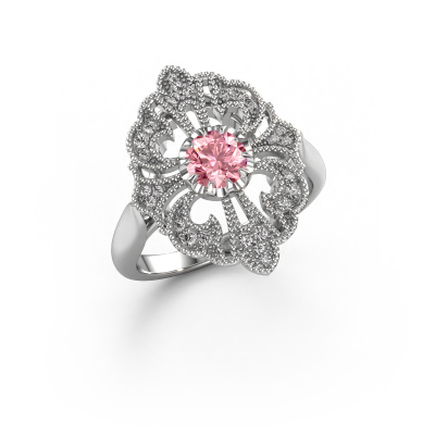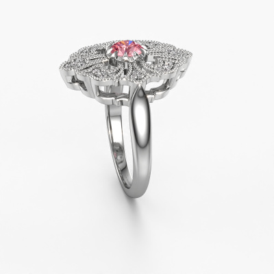 Dieser graziöse Verlobungsring aus 14 Karat Weißgold heißt Naida und hat 5 mm rosa Labordiamant. Ist Ihre Freundin von Vintage begeistert? Dann wird dieser Weißgold Verlobungsring sicherlich perfekt zu ihrem Stil passen. Ein trendiger Ring mit einem Hauch von klassischem Schmuck. Ein wirklich atemberaubendes, romantisches Design! Vor allem, wenn Sie den Ring nach ihren Wünschen anpassen. Dieser Vintage Cluster Verlobungsring ist mit atemberaubenden rosa Labordiamanten besetzt. Wie Sie sehen können, sind Sie der Boss bei der Auswahl des Edelsteins, der am besten zu Ihrer Freundin passt. Jeder Edelstein wird sorgfältig von unseren Händlern ausgewählt, die auf der ganzen Welt verteilt sind. Nichts als die besten Edelsteine für unseren erfahrenen Juwelier! Schließlich ist es seine Krönung! Jedes Schmuckstück wird von unseren Meister-Goldschmieden in unserem eigenen Studio für Sie gefertigt.Durch die Kombination modernster Technik mit uralter Handwerkskunst können wir alle Verlobungsringe in unserem eigenen Studio anfertigen. Jedes Schmuckstück wird auf Anfrage gefertigt. Das ist vorteilhaft, weil wir Ihnen dadurch einen Preis anbieten können, den Sie nirgendwo anders finden.Haben Sie einen bestimmten Ring im Sinn? Eines, dass Sie irgendwo gesehen haben. Bitte zögern Sie nicht, uns zu sagen, was Sie wollen und wir werden Ihr Design in einen Einzigartigen Verlobungsring verwandeln. Sie können die Entwicklungen Ihres Ringdesigns verfolgen, da wir 3D-Zeichnungen verwenden. Das gibt Ihnen eine realistische Vorschau Ihres Designs. Wir senden Ihnen gerne ein unverbindliches Angebot zu einem fairen Preis/Leistungsverhältnis. Es wird Sie erstaunen.Um es einfacher zu machen, bieten wir eine kostenlose 30-tägige Rücksendung.