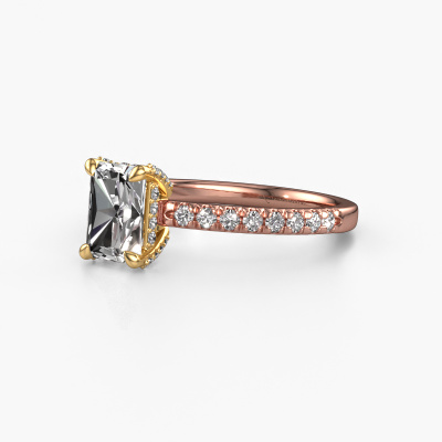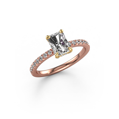Der oben gezeigte Verlobungsring wird Saskia rad 1 genannt. Wir nennen das einen Solitär-Ring, denn er hat einen einzelnen Edelstein. Es ist ein 14 Karat Roségold ring, mit 7x5 mm radiant custom diamant. Das Besondere an unserem Konfigurator ist dass Sie selbst einem Schmuckstück zusammenstellen können zu einem eigenen persönlichen Schmuckstück. Dieser Solitäre Verlobungsring ist gefertigt in der Edelmetall Kombination Roségold mit Gold, aber Sie können also auch wählen aus anderen Farben. Jedes Schmuckstück wird hergestellt von einem Team leidenschaftlicher Goldschmiede und Schmuckdesigner. Das wird Ihr Kronjuwel unbedingt zu einem Blickfang machen. Der Solitär-Verlobungsring ist eine Sonderform des Verlobungsring. Seine offenen Krappen ermöglichen, dass Licht aus mehr Winkeln auf den Edelstein trifft. Dieser [style_plural] Verlobungsring ist durch die hohe Positionierung des Edelsteins ein atemberaubender Blickfang. Wir schmücken diesen Solitär-Ring sorgfältig von Hand, damit Sie Ihren Anfrage mit einem einzigartigen Ring würdigen können. Die Liebe Ihres Lebens verdient nur das Beste. Nach Erhalt Ihrer Bestellung beginnen unsere Goldschmiede mit Leidenschaft den kreativen Prozess und fertigen Ihren Verlobungsring in unserem eigenen Studio. Da wir keine großen Lager haben, werden diese Kosten nicht an Sie weitergegeben. Unsere Preisgestaltung ist der Beweis dafür! Wir bieten Schmuck zum niedrigsten Preis, garantiert.Verschiedene Arten von neuen Ringen werden täglich von unserem Team angefertigt. Vielleicht haben Sie irgendwo einen Pavé Solitär Verlobungsring gefunden. Einen, den Sie Ihrem Liebsten schenken möchten. Bitte zögern Sie nicht, unseren Schmuckdesignern Ihre Gedanken und Ihr Design zu zeigen. Wir würden gerne Ihr Design in einen [style_plural] Verlobungsring verwandeln. Sie können die Entwicklungen Ihres Ringdesigns verfolgen, da wir sehr detaillierte 3D-Zeichnungen verwenden. Darüber hinaus können Sie einen Dummy des Designs bestellen. Ein Dummy ist ein Kunststoffring, der nach Ihrem Ringdesign gestaltet werden kann. Sie können ihn anprobieren und prüfen, ob der Verlobungsring Ihren Vorstellungen entspricht. Wir senden Ihnen gerne ein unverbindliches Angebot zu einem fairen Preis/Leistungsverhältnis. Das Angebot wird Sie angesichts der Qualität des Rings und der Edelsteine verblüffen.Um es einfacher zu machen, bieten wir eine kostenlose 30-tägige Rücksendung.