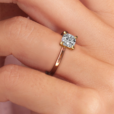 Der oben gezeigte Verlobungsring wird Crystal CUS 1 genannt. Wir nennen das einen Solitär-Ring, denn er hat einen einzelnen Edelstein. Es ist ein 14 Karat Roségold ring, mit 5.5 mm cussion custom diamant. Das Besondere an unserem Konfigurator ist dass Sie selbst einem Schmuckstück zusammenstellen können zu einem eigenen persönlichen Schmuckstück. Dieser Solitäre Verlobungsring ist gefertigt in der Edelmetall Kombination Roségold mit Gold, aber Sie können also auch wählen aus anderen Farben. Jedes Schmuckstück wird hergestellt mit Leidenschaft und Liebe, von einem unserer Meister-Goldschmiede. Der Solitär-Verlobungsring ist eine Sonderform des Verlobungsring. Seine offenen Krappen ermöglichen, dass Licht aus mehr Winkeln auf den Edelstein trifft. Dieser moderne Verlobungsring ist durch die hohe Positionierung des Edelsteins ein atemberaubender Blickfang. Wir schmücken diesen Solitär-Ring sorgfältig von Hand, damit Sie Ihren Anfrage mit einem einzigartigen Ring würdigen können. Die Liebe Ihres Lebens verdient nur das Beste. Da wir unsere eigenen Ringe entwerfen und liefern, können wir Ihnen einen Verlobungsring zu einem Preis anbieten, den Sie nirgendwo anders finden. Ein Ring wird auf Bestellung angefertigt, wodurch kein überschüssiges Material anfällt. So können wir Ihnen ein gutes Angebot zum besten Preis machen. Wir verstehen, dass es sich riskant anfühlt, Ihren Verlobungsring online zu kaufen. Jedoch helfen wir Ihnen gerne beim Designprozess unter Berücksichtigung Ihres Budgets.Unser Team fügt unserer Online-Kollektion täglich neue Designs hinzu. Unsere Designer und Goldschmiede arbeiten zusammen, um das beste Design zu kreieren. Wir bemühen uns, eine vielfältige Kollektion von Schmuckstücken anzubieten. Vielleicht haben Sie ein bestimmtes Design im Sinn. Eines, dass Sie irgendwo gesehen haben. Gerne geben wir Ihnen eine kostenlose Beratung. Wir machen Ihnen ein Angebot, basierend auf einem fairen Preis/Leistungsverhältnis, das Sie verblüffen wird.Um es einfacher zu machen, bieten wir eine kostenlose 30-tägige Rücksendung.