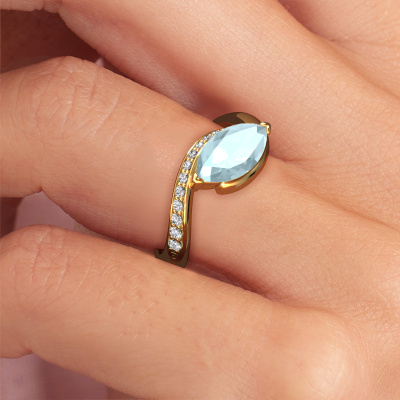 Dieser Verlobungsring aus 585 Gold heißt Aida MRQ side. Sind Sie auf der Suche nach einem design, Gold Verlobungsring mit Aquamarin 11x5.5 mm, den Sie nach Ihren Wünschen gestalten können? Dieser design Verlobungsring ist mit Aquamarin besetzt, der sorgfältig für diesen speziellen Ring ausgewählt wurde, um den besten Effekt zu erzielen. Unser erfahrener Juwelier kreiert Ihren Ring in unserem eigenen Studio eine Etage tiefer, wo der Aquamarin mit großer Sorgfalt eingefasst wird. Der Ring wird dann bearbeitet und poliert, bis er perfekt ist. Nichts als das Beste für die Liebe Ihres Lebens! Das Besondere an unserem Konfigurator ist dass Sie selbst einem Schmuckstück zusammenstellen können zu einem eigenen persönlichen Schmuckstück. Jedes Schmuckstück wird hergestellt mit Leidenschaft und Liebe, von einem unserer Meister-Goldschmiede.. Haben Sie ein bestimmtes Budget? Sie können uns gerne kontaktieren, damit wir Ihre Optionen besprechen können. Wir bieten unsere Verlobungsringe zum garantiert besten Preis, denn wir fertigen sie auf Bestellung. Solche Preise finden Sie nirgendwo anders!Unser Team fügt unserer Online-Kollektion täglich neue Designs hinzu. Unsere Designer und Goldschmiede arbeiten zusammen, um das beste Design zu kreieren. Wir bemühen uns, eine vielfältige Kollektion von Schmuckstücken anzubieten. Vielleicht haben Sie ein bestimmtes Design im Sinn. Eines, dass Sie irgendwo gesehen haben. Gerne geben wir Ihnen eine kostenlose Beratung. Wir machen Ihnen ein Angebot, basierend auf einem fairen Preis/Leistungsverhältnis, das Sie verblüffen wird.Um es einfacher zu machen, bieten wir eine kostenlose 30-tägige Rücksendung.