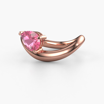 Der oben gezeigte Verlobungsring wird Chloe PER genannt. Wir nennen das einen Solitär-Ring, denn er hat einen einzelnen Edelstein. Es ist ein 14 Karat Roségold Verlobungsring, mit 8x6 mm tropfen Pink Saphir. Dieser außergewöhnliche, design