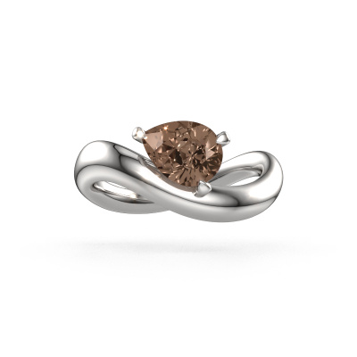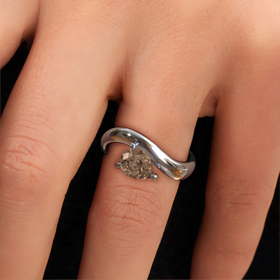 Der oben gezeigte Verlobungsring wird Chloe PER genannt. Wir nennen das einen Solitär-Ring, denn er hat einen einzelnen Edelstein. Es ist ein 14 Karat Weißgold Verlobungsring, mit 1.00 crt tropfen Braun Diamant. Dieser außergewöhnliche, design