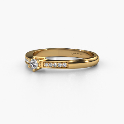 Der oben gezeigte Ring wird Luna 2 genannt. Es ist ein Pavé Solitär Ring, da er einen zentralen Edelstein und ein Band mit Pavé-Fassung hat. Dieser 14 Karat Gold ring ist mit einem 0.055 crt rund Diamant-Mittelstein besetzt und das Band hat eine Pavé-Fassung mit Diamanten. Jedes Schmuckstück ist einzigartig in jeder Hinsicht! Einfach nach Ihren Wünschen anzupassen.Dieser klassische Gold Pavé Solitär Verlobungsring mit Pavé-Fassung hat einen exquisiten, rund Diamant als Mittelstein. Um den zentralen Stein noch mehr zu betonen, hat das Band eine Pavé-Fassung mit weiteren Diamanten. Durch die offenen Krappen kann das Licht aus mehreren Winkeln auf den Diamant treffen und der Diamant-Ring funkelt noch mehr. Das obere Foto zeigt die leidenschaftlich handgefertigten Details des Rings. Die hohe Positionierung der Mittelstein ist ein echter Blickfang. Der perfekte Verlobungsring für das Kronjuwel Ihres Lebens!Da wir unsere eigenen Ringe entwerfen und liefern, können wir Ihnen einen Verlobungsring zu einem Preis anbieten, den Sie nirgendwo anders finden. Ein Ring wird auf Bestellung angefertigt, wodurch kein überschüssiges Material anfällt. So können wir Ihnen ein gutes Angebot zum besten Preis machen. Wir verstehen, dass es sich riskant anfühlt, Ihren Verlobungsring online zu kaufen. Jedoch helfen wir Ihnen gerne beim Designprozess unter Berücksichtigung Ihres Budgets.Unser Team fügt unserer Online-Kollektion täglich neue Designs hinzu. Unsere Designer und Goldschmiede arbeiten zusammen, um das beste Design zu kreieren. Wir bemühen uns, eine vielfältige Kollektion von Schmuckstücken anzubieten. Vielleicht haben Sie ein bestimmtes Design im Sinn. Eines, dass Sie irgendwo gesehen haben. Gerne geben wir Ihnen eine kostenlose Beratung. Wir machen Ihnen ein Angebot, basierend auf einem fairen Preis/Leistungsverhältnis, das Sie verblüffen wird.Um es einfacher zu machen, bieten wir eine kostenlose 30-tägige Rücksendung.