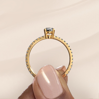 Der oben gezeigte Ring wird Lynelle 2 genannt. Es ist ein Pavé Solitär Ring, da er einen zentralen Edelstein und ein Band mit Pavé-Fassung hat. Dieser 14 Karat Gold ring ist mit einem 0.60 crt oval Diamant-Mittelstein besetzt und das Band hat eine Pavé-Fassung mit Diamanten. Jedes Schmuckstück ist um Ihrem Finger Glanz zu verleihen. Jeder Ring wird von unseren Goldschmieden liebevoll von Hand gefertigt.Dieser klassische Gold Pavé Solitär Verlobungsring mit Pavé-Fassung hat einen exquisiten, oval Diamant als Mittelstein. Um den zentralen Stein noch mehr zu betonen, hat das Band eine Pavé-Fassung mit weiteren Diamanten. Durch die offenen Krappen kann das Licht aus mehreren Winkeln auf den Diamant treffen und der Diamant-Ring funkelt noch mehr. Das obere Foto zeigt die leidenschaftlich handgefertigten Details des Rings. Die hohe Positionierung der Mittelstein ist ein echter Blickfang. Der perfekte Verlobungsring für das Kronjuwel Ihres Lebens!Nachdem Sie Ihre Bestellung aufgegeben haben, beginnen unsere Goldschmiede mit dem kreativen Prozess der Herstellung Ihres Lynelle 2 Verlobungsring. Wir haben keine Lager. Das ist vorteilhaft, da diese Kosten nicht an Sie weitergegeben werden. Daher sind wir in der Lage, Schmuck zu außergewöhnlich niedrigen Preisen anzubieten.Haben Sie einen bestimmten Ring im Sinn? Eines, dass Sie irgendwo gesehen haben. Bitte zögern Sie nicht, uns zu sagen, was Sie wollen und wir werden Ihr Design in einen Einzigartigen Verlobungsring verwandeln. Sie können die Entwicklungen Ihres Ringdesigns verfolgen, da wir 3D-Zeichnungen verwenden. Das gibt Ihnen eine realistische Vorschau Ihres Designs. Wir senden Ihnen gerne ein unverbindliches Angebot zu einem fairen Preis/Leistungsverhältnis. Es wird Sie erstaunen.Um es einfacher zu machen, bieten wir eine kostenlose 30-tägige Rücksendung.