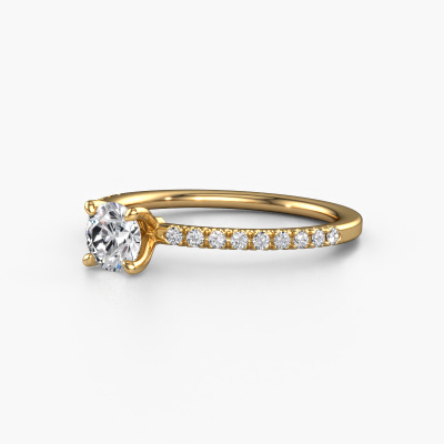 Der oben gezeigte Gold Verlobungsring wird Crystal RND 2 genannt. Es ist ein Pavé Solitär Ring, da er einen zentralen Edelstein und ein Band mit Pavé-Fassung hat. Der klassische Pavé Solitär Verlobungsring ist in der Kombination 585 Gold mit Gold und ist mit einem rund 0.50 crt Diamant-Mittelstein besetzt und das Band hat eine Pavé-Fassung mit Lab grown Diamant. Jedes Schmuckstück ist einzigartig in jeder Hinsicht! Einfach nach Ihren Wünschen anzupassen. Um den zentralen Stein noch mehr zu betonen, hat das Band eine Pavé-Fassung mit weiteren Diamant. Durch die offenen Krappen kann das Licht aus mehreren Winkeln auf den Diamant treffen und der Diamant-Ring funkelt noch mehr. Das obere Foto zeigt die leidenschaftlich handgefertigten Details des Rings. Die hohe Positionierung der Mittelstein ist ein echter Blickfang. Der perfekte Verlobungsring für das Kronjuwel Ihres Lebens!Nachdem Sie Ihre Bestellung aufgegeben haben, beginnen unsere Goldschmiede mit dem kreativen Prozess der Herstellung Ihres Crystal RND 2 Verlobungsring. Wir haben keine Lager. Das ist vorteilhaft, da diese Kosten nicht an Sie weitergegeben werden. Daher sind wir in der Lage, Schmuck zu außergewöhnlich niedrigen Preisen anzubieten.Verschiedene Arten von neuen Ringen werden täglich von unserem Team angefertigt. Vielleicht haben Sie irgendwo einen Pavé Solitär Verlobungsring gefunden. Einen, den Sie Ihrem Liebsten schenken möchten. Bitte zögern Sie nicht, unseren Schmuckdesignern Ihre Gedanken und Ihr Design zu zeigen. Wir würden gerne Ihr Design in einen klassische Verlobungsring verwandeln. Sie können die Entwicklungen Ihres Ringdesigns verfolgen, da wir sehr detaillierte 3D-Zeichnungen verwenden. Darüber hinaus können Sie einen Dummy des Designs bestellen. Ein Dummy ist ein Kunststoffring, der nach Ihrem Ringdesign gestaltet werden kann. Sie können ihn anprobieren und prüfen, ob der Verlobungsring Ihren Vorstellungen entspricht. Wir senden Ihnen gerne ein unverbindliches Angebot zu einem fairen Preis/Leistungsverhältnis. Das Angebot wird Sie angesichts der Qualität des Rings und der Edelsteine verblüffen.Um es einfacher zu machen, bieten wir eine kostenlose 30-tägige Rücksendung.