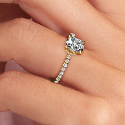 Der oben gezeigte Gold Verlobungsring wird Crystal CSH 4 genannt. Es ist ein Pavé Solitär Ring, da er einen zentralen Edelstein und ein Band mit Pavé-Fassung hat. Der schicke Pavé Solitär Verlobungsring ist in der Kombination 585 Gold mit Gold und ist mit einem kissen rechteckig 1.00 crt Diamant-Mittelstein besetzt und das Band hat eine Pavé-Fassung mit Lab grown Diamant. Jedes Schmuckstück wird hergestellt mit Leidenschaft und Liebe, von einem unserer Meister-Goldschmiede. Um den zentralen Stein noch mehr zu betonen, hat das Band eine Pavé-Fassung mit weiteren Diamant. Durch die offenen Krappen kann das Licht aus mehreren Winkeln auf den Diamant treffen und der Diamant-Ring funkelt noch mehr. Das obere Foto zeigt die leidenschaftlich handgefertigten Details des Rings. Die hohe Positionierung der Mittelstein ist ein echter Blickfang. Der perfekte Verlobungsring für das Kronjuwel Ihres Lebens!Durch die Kombination modernster Technik mit uralter Handwerkskunst können wir alle Verlobungsringe in unserem eigenen Studio anfertigen. Jedes Schmuckstück wird auf Anfrage gefertigt. Das ist vorteilhaft, weil wir Ihnen dadurch einen Preis anbieten können, den Sie nirgendwo anders finden.Unsere Designer und Goldschmiede arbeiten jeden Tag zusammen und versuchen, neue Schmuckstücke zu kreieren. Vielleicht haben Sie irgendwo einen schönen, schicke Verlobungsring gefunden, nach dem Ihr einzigartiger Ring gestaltet werden kann. Setzen Sie sich mit uns in Verbindung. Wir machen Ihnen ein Angebot, basierend auf einem fairen Preis/Leistungsverhältnis, das Sie begeistern wird.Um es einfacher zu machen, bieten wir eine kostenlose 30-tägige Rücksendung.