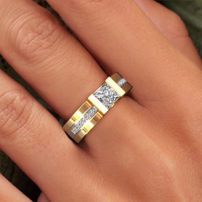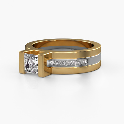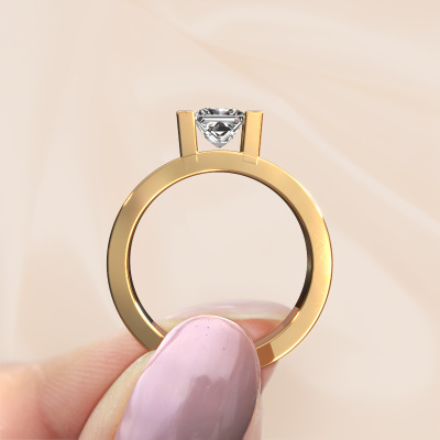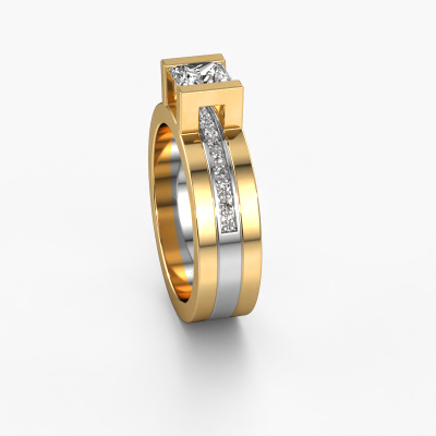 Der oben gezeigte Gold Verlobungsring wird Desire genannt. Es ist ein Pavé Solitär Ring, da er einen zentralen Edelstein und ein Band mit Pavé-Fassung hat. Der moderne Pavé Solitär Verlobungsring ist in der Kombination 14 Karat Gold mit Weißgold und ist mit einem princess 0.80 crt Diamant-Mittelstein besetzt und das Band hat eine Pavé-Fassung mit Diamanten. Jedes Schmuckstück wird von unseren Meister-Goldschmieden in unserem eigenen Studio für Sie gefertigt. Um den zentralen Stein noch mehr zu betonen, hat das Band eine Pavé-Fassung mit weiteren Diamant. Durch die offenen Krappen kann das Licht aus mehreren Winkeln auf den Diamant treffen und der Diamant-Ring funkelt noch mehr. Das obere Foto zeigt die leidenschaftlich handgefertigten Details des Rings. Die hohe Positionierung der Mittelstein ist ein echter Blickfang. Der perfekte Verlobungsring für das Kronjuwel Ihres Lebens!Durch die Kombination modernster Technik mit uralter Handwerkskunst können wir alle Verlobungsringe in unserem eigenen Studio anfertigen. Jedes Schmuckstück wird auf Anfrage gefertigt. Das ist vorteilhaft, weil wir Ihnen dadurch einen Preis anbieten können, den Sie nirgendwo anders finden.Haben Sie irgendwo einen bestimmten Verlobungsring gefunden, den Sie Ihrem Liebsten schenken möchten? Sie können uns gerne sagen, was Sie wollen und wir werden Ihr Design in einen Einzigartigen moderne Verlobungsring verwandeln. Sie können die Entwicklungen Ihres Ringdesigns verfolgen, da wir 3D-Zeichnungen verwenden. Das gibt Ihnen eine realistische Vorschau, wie Ihr Design aussehen wird. Sie können auch einen Dummy vorbestellen. Ein Dummy ist ein Kunststoffring, der nach Ihrem Ringdesign gestaltet werden kann. Sie können ihn anprobieren und prüfen, ob seine Breite und Größe für Sie geeignet sind. Wir senden Ihnen gerne ein unverbindliches Angebot zu einem fairen Preis/Leistungsverhältnis. Sie werden in Anbetracht der Qualität des Rings und der Edelsteine überrascht sein.Um es einfacher zu machen, bieten wir eine kostenlose 30-tägige Rücksendung.