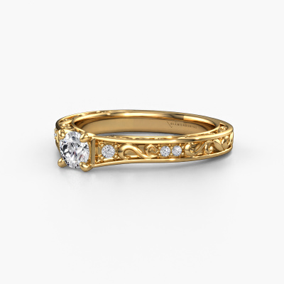 Der oben gezeigte Ring wird Mallory RND genannt. Es ist ein Pavé Solitär Ring, da er einen zentralen Edelstein und ein Band mit Pavé-Fassung hat. Dieser 585 Gold ring ist mit einem 0.30 crt rund Diamant-Mittelstein besetzt und das Band hat eine Pavé-Fassung mit Lab grown Diamant. Jedes Schmuckstück wird von unseren Meister-Goldschmieden in unserem eigenen Studio für Sie gefertigt.Dieser Vintage Gold Pavé Solitär Verlobungsring mit Pavé-Fassung hat einen exquisiten, rund Diamant als Mittelstein. Um den zentralen Stein noch mehr zu betonen, hat das Band eine Pavé-Fassung mit weiteren Lab grown Diamant. Durch die offenen Krappen kann das Licht aus mehreren Winkeln auf den Diamant treffen und der Diamant-Ring funkelt noch mehr. Das obere Foto zeigt die leidenschaftlich handgefertigten Details des Rings. Die hohe Positionierung der Mittelstein ist ein echter Blickfang. Der perfekte Verlobungsring für das Kronjuwel Ihres Lebens!Da wir unsere eigenen Ringe entwerfen und liefern, können wir Ihnen einen Verlobungsring zu einem Preis anbieten, den Sie nirgendwo anders finden. Ein Ring wird auf Bestellung angefertigt, wodurch kein überschüssiges Material anfällt. So können wir Ihnen ein gutes Angebot zum besten Preis machen. Wir verstehen, dass es sich riskant anfühlt, Ihren Verlobungsring online zu kaufen. Jedoch helfen wir Ihnen gerne beim Designprozess unter Berücksichtigung Ihres Budgets.Verschiedene Arten von neuen Ringen werden täglich von unserem Team angefertigt. Vielleicht haben Sie irgendwo einen Pavé Solitär Verlobungsring gefunden. Einen, den Sie Ihrem Liebsten schenken möchten. Bitte zögern Sie nicht, unseren Schmuckdesignern Ihre Gedanken und Ihr Design zu zeigen. Wir würden gerne Ihr Design in einen Vintage Verlobungsring verwandeln. Sie können die Entwicklungen Ihres Ringdesigns verfolgen, da wir sehr detaillierte 3D-Zeichnungen verwenden. Darüber hinaus können Sie einen Dummy des Designs bestellen. Ein Dummy ist ein Kunststoffring, der nach Ihrem Ringdesign gestaltet werden kann. Sie können ihn anprobieren und prüfen, ob der Verlobungsring Ihren Vorstellungen entspricht. Wir senden Ihnen gerne ein unverbindliches Angebot zu einem fairen Preis/Leistungsverhältnis. Das Angebot wird Sie angesichts der Qualität des Rings und der Edelsteine verblüffen.Um es einfacher zu machen, bieten wir eine kostenlose 30-tägige Rücksendung.