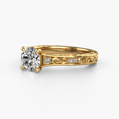 Der oben gezeigte Ring wird Mallory rnd genannt. Es ist ein Pavé Solitär Ring, da er einen zentralen Edelstein und ein Band mit Pavé-Fassung hat. Dieser 14 Karat Gold ring ist mit einem 1.00 crt rund Diamant-Mittelstein besetzt und das Band hat eine Pavé-Fassung mit Lab grown Diamant. Jedes Schmuckstück wird von unseren Meister-Goldschmieden in unserem eigenen Studio für Sie gefertigt.Dieser Vintage Gold Pavé Solitär Verlobungsring mit Pavé-Fassung hat einen exquisiten, rund Diamant als Mittelstein. Um den zentralen Stein noch mehr zu betonen, hat das Band eine Pavé-Fassung mit weiteren Lab grown Diamant. Durch die offenen Krappen kann das Licht aus mehreren Winkeln auf den Diamant treffen und der Diamant-Ring funkelt noch mehr. Das obere Foto zeigt die leidenschaftlich handgefertigten Details des Rings. Die hohe Positionierung der Mittelstein ist ein echter Blickfang. Der perfekte Verlobungsring für das Kronjuwel Ihres Lebens!Da wir unsere eigenen Ringe entwerfen und liefern, können wir Ihnen einen Verlobungsring zu einem Preis anbieten, den Sie nirgendwo anders finden. Ein Ring wird auf Bestellung angefertigt, wodurch kein überschüssiges Material anfällt. So können wir Ihnen ein gutes Angebot zum besten Preis machen. Wir verstehen, dass es sich riskant anfühlt, Ihren Verlobungsring online zu kaufen. Jedoch helfen wir Ihnen gerne beim Designprozess unter Berücksichtigung Ihres Budgets.Verschiedene Arten von neuen Ringen werden täglich von unserem Team angefertigt. Vielleicht haben Sie irgendwo einen Pavé Solitär Verlobungsring gefunden. Einen, den Sie Ihrem Liebsten schenken möchten. Bitte zögern Sie nicht, unseren Schmuckdesignern Ihre Gedanken und Ihr Design zu zeigen. Wir würden gerne Ihr Design in einen Vintage Verlobungsring verwandeln. Sie können die Entwicklungen Ihres Ringdesigns verfolgen, da wir sehr detaillierte 3D-Zeichnungen verwenden. Darüber hinaus können Sie einen Dummy des Designs bestellen. Ein Dummy ist ein Kunststoffring, der nach Ihrem Ringdesign gestaltet werden kann. Sie können ihn anprobieren und prüfen, ob der Verlobungsring Ihren Vorstellungen entspricht. Wir senden Ihnen gerne ein unverbindliches Angebot zu einem fairen Preis/Leistungsverhältnis. Das Angebot wird Sie angesichts der Qualität des Rings und der Edelsteine verblüffen.Um es einfacher zu machen, bieten wir eine kostenlose 30-tägige Rücksendung.