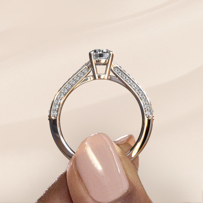 Der oben gezeigte Ring wird Ruby rnd genannt. Es ist ein Pavé Solitär Ring, da er einen zentralen Edelstein und ein Band mit Pavé-Fassung hat. Dieser Platin ring ist mit einem 0.50 crt rund Diamant-Mittelstein besetzt und das Band hat eine Pavé-Fassung mit Diamanten. Jedes Schmuckstück wird nur für Sie persönlich hergestellt, mit Liebe zum Detail und Design.Dieser exklusive Platin Pavé Solitär Verlobungsring mit Pavé-Fassung hat einen exquisiten, rund Diamant als Mittelstein. Um den zentralen Stein noch mehr zu betonen, hat das Band eine Pavé-Fassung mit weiteren Diamanten. Durch die offenen Krappen kann das Licht aus mehreren Winkeln auf den Diamant treffen und der Diamant-Ring funkelt noch mehr. Das obere Foto zeigt die leidenschaftlich handgefertigten Details des Rings. Die hohe Positionierung der Mittelstein ist ein echter Blickfang. Der perfekte Verlobungsring für das Kronjuwel Ihres Lebens!Da wir unsere eigenen Ringe entwerfen und liefern, können wir Ihnen einen Verlobungsring zu einem Preis anbieten, den Sie nirgendwo anders finden. Ein Ring wird auf Bestellung angefertigt, wodurch kein überschüssiges Material anfällt. So können wir Ihnen ein gutes Angebot zum besten Preis machen. Wir verstehen, dass es sich riskant anfühlt, Ihren Verlobungsring online zu kaufen. Jedoch helfen wir Ihnen gerne beim Designprozess unter Berücksichtigung Ihres Budgets.Haben Sie einen bestimmten Ring im Sinn? Eines, dass Sie irgendwo gesehen haben. Bitte zögern Sie nicht, uns zu sagen, was Sie wollen und wir werden Ihr Design in einen Einzigartigen Verlobungsring verwandeln. Sie können die Entwicklungen Ihres Ringdesigns verfolgen, da wir 3D-Zeichnungen verwenden. Das gibt Ihnen eine realistische Vorschau Ihres Designs. Wir senden Ihnen gerne ein unverbindliches Angebot zu einem fairen Preis/Leistungsverhältnis. Es wird Sie erstaunen.Um es einfacher zu machen, bieten wir eine kostenlose 30-tägige Rücksendung.
