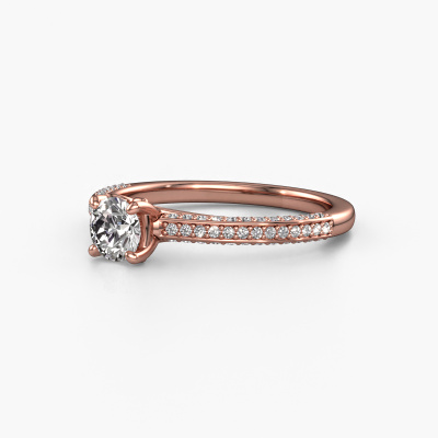 Der oben gezeigte Ring wird Elenore rnd genannt. Es ist ein Pavé Solitär Ring, da er einen zentralen Edelstein und ein Band mit Pavé-Fassung hat. Dieser 14 Karat Roségold ring ist mit einem 0.40 crt rund Diamant-Mittelstein besetzt und das Band hat eine Pavé-Fassung mit Lab grown Diamant. Jedes Schmuckstück wird von unseren Meister-Goldschmieden in unserem eigenen Studio für Sie gefertigt.Dieser exklusive Roségold Pavé Solitär Verlobungsring mit Pavé-Fassung hat einen exquisiten, rund Diamant als Mittelstein. Um den zentralen Stein noch mehr zu betonen, hat das Band eine Pavé-Fassung mit weiteren Lab grown Diamant. Durch die offenen Krappen kann das Licht aus mehreren Winkeln auf den Diamant treffen und der Diamant-Ring funkelt noch mehr. Das obere Foto zeigt die leidenschaftlich handgefertigten Details des Rings. Die hohe Positionierung der Mittelstein ist ein echter Blickfang. Der perfekte Verlobungsring für das Kronjuwel Ihres Lebens!Durch die Kombination modernster Technik mit uralter Handwerkskunst können wir alle Verlobungsringe in unserem eigenen Studio anfertigen. Jedes Schmuckstück wird auf Anfrage gefertigt. Das ist vorteilhaft, weil wir Ihnen dadurch einen Preis anbieten können, den Sie nirgendwo anders finden.Haben Sie irgendwo einen bestimmten Verlobungsring gefunden, den Sie Ihrem Liebsten schenken möchten? Sie können uns gerne sagen, was Sie wollen und wir werden Ihr Design in einen Einzigartigen exklusive Verlobungsring verwandeln. Sie können die Entwicklungen Ihres Ringdesigns verfolgen, da wir 3D-Zeichnungen verwenden. Das gibt Ihnen eine realistische Vorschau, wie Ihr Design aussehen wird. Sie können auch einen Dummy vorbestellen. Ein Dummy ist ein Kunststoffring, der nach Ihrem Ringdesign gestaltet werden kann. Sie können ihn anprobieren und prüfen, ob seine Breite und Größe für Sie geeignet sind. Wir senden Ihnen gerne ein unverbindliches Angebot zu einem fairen Preis/Leistungsverhältnis. Sie werden in Anbetracht der Qualität des Rings und der Edelsteine überrascht sein.Um es einfacher zu machen, bieten wir eine kostenlose 30-tägige Rücksendung.