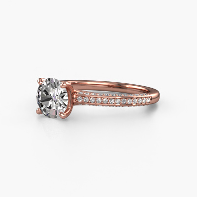 Der oben gezeigte Ring wird Elenore rnd genannt. Es ist ein Pavé Solitär Ring, da er einen zentralen Edelstein und ein Band mit Pavé-Fassung hat. Dieser 14 Karat Roségold ring ist mit einem 1.00 crt rund Diamant-Mittelstein besetzt und das Band hat eine Pavé-Fassung mit Lab grown Diamant. Jedes Schmuckstück wird von unseren Meister-Goldschmieden in unserem eigenen Studio für Sie gefertigt.Dieser exklusive Roségold Pavé Solitär Verlobungsring mit Pavé-Fassung hat einen exquisiten, rund Diamant als Mittelstein. Um den zentralen Stein noch mehr zu betonen, hat das Band eine Pavé-Fassung mit weiteren Lab grown Diamant. Durch die offenen Krappen kann das Licht aus mehreren Winkeln auf den Diamant treffen und der Diamant-Ring funkelt noch mehr. Das obere Foto zeigt die leidenschaftlich handgefertigten Details des Rings. Die hohe Positionierung der Mittelstein ist ein echter Blickfang. Der perfekte Verlobungsring für das Kronjuwel Ihres Lebens!Durch die Kombination modernster Technik mit uralter Handwerkskunst können wir alle Verlobungsringe in unserem eigenen Studio anfertigen. Jedes Schmuckstück wird auf Anfrage gefertigt. Das ist vorteilhaft, weil wir Ihnen dadurch einen Preis anbieten können, den Sie nirgendwo anders finden.Haben Sie irgendwo einen bestimmten Verlobungsring gefunden, den Sie Ihrem Liebsten schenken möchten? Sie können uns gerne sagen, was Sie wollen und wir werden Ihr Design in einen Einzigartigen exklusive Verlobungsring verwandeln. Sie können die Entwicklungen Ihres Ringdesigns verfolgen, da wir 3D-Zeichnungen verwenden. Das gibt Ihnen eine realistische Vorschau, wie Ihr Design aussehen wird. Sie können auch einen Dummy vorbestellen. Ein Dummy ist ein Kunststoffring, der nach Ihrem Ringdesign gestaltet werden kann. Sie können ihn anprobieren und prüfen, ob seine Breite und Größe für Sie geeignet sind. Wir senden Ihnen gerne ein unverbindliches Angebot zu einem fairen Preis/Leistungsverhältnis. Sie werden in Anbetracht der Qualität des Rings und der Edelsteine überrascht sein.Um es einfacher zu machen, bieten wir eine kostenlose 30-tägige Rücksendung.