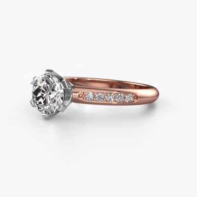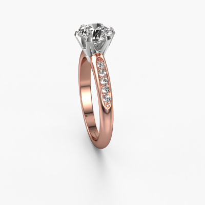 Der oben gezeigte Ring wird Tiffy 2 genannt. Es ist ein Pavé Solitär Ring, da er einen zentralen Edelstein und ein Band mit Pavé-Fassung hat. Dieser 14 Karat Roségold ring ist mit einem 1.00 crt rund Diamant-Mittelstein besetzt und das Band hat eine Pavé-Fassung mit Diamanten. Jedes Schmuckstück ist um Ihrem Finger Glanz zu verleihen. Jeder Ring wird von unseren Goldschmieden liebevoll von Hand gefertigt.Dieser traditionell Roségold Pavé Solitär Verlobungsring mit Pavé-Fassung hat einen exquisiten, rund Diamant als Mittelstein. Um den zentralen Stein noch mehr zu betonen, hat das Band eine Pavé-Fassung mit weiteren Diamanten. Durch die offenen Krappen kann das Licht aus mehreren Winkeln auf den Diamant treffen und der Diamant-Ring funkelt noch mehr. Das obere Foto zeigt die leidenschaftlich handgefertigten Details des Rings. Die hohe Positionierung der Mittelstein ist ein echter Blickfang. Der perfekte Verlobungsring für das Kronjuwel Ihres Lebens!Mit unserer modernen Technik können wir Schmuckstücke von höchster Qualität mit größter Sorgfalt für Sie entwerfen und anpassen. Unsere Verlobungsringe sind immer um 30 Prozent günstiger als bei anderen Juwelieren. Wir fertigen Verlobungsringe auf Bestellung, also müssen wir keine großen Lager unterhalten. Wenn Sie ein bestimmtes Budget haben, beraten wir Sie gerne entsprechend.Unsere Designer und Goldschmiede arbeiten jeden Tag zusammen und versuchen, neue Schmuckstücke zu kreieren. Vielleicht haben Sie irgendwo einen schönen, traditionell Verlobungsring gefunden, nach dem Ihr einzigartiger Ring gestaltet werden kann. Setzen Sie sich mit uns in Verbindung. Wir machen Ihnen ein Angebot, basierend auf einem fairen Preis/Leistungsverhältnis, das Sie begeistern wird.Um es einfacher zu machen, bieten wir eine kostenlose 30-tägige Rücksendung.