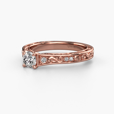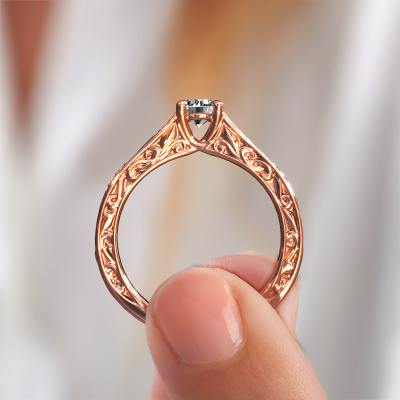 Der oben gezeigte Ring wird Mallory rnd genannt. Es ist ein Pavé Solitär Ring, da er einen zentralen Edelstein und ein Band mit Pavé-Fassung hat. Dieser 14 Karat Roségold ring ist mit einem 0.40 crt rund Diamant-Mittelstein besetzt und das Band hat eine Pavé-Fassung mit Lab grown Diamant. Jedes Schmuckstück wird von unseren Meister-Goldschmieden in unserem eigenen Studio für Sie gefertigt.Dieser Vintage Roségold Pavé Solitär Verlobungsring mit Pavé-Fassung hat einen exquisiten, rund Diamant als Mittelstein. Um den zentralen Stein noch mehr zu betonen, hat das Band eine Pavé-Fassung mit weiteren Lab grown Diamant. Durch die offenen Krappen kann das Licht aus mehreren Winkeln auf den Diamant treffen und der Diamant-Ring funkelt noch mehr. Das obere Foto zeigt die leidenschaftlich handgefertigten Details des Rings. Die hohe Positionierung der Mittelstein ist ein echter Blickfang. Der perfekte Verlobungsring für das Kronjuwel Ihres Lebens!Da wir unsere eigenen Ringe entwerfen und liefern, können wir Ihnen einen Verlobungsring zu einem Preis anbieten, den Sie nirgendwo anders finden. Ein Ring wird auf Bestellung angefertigt, wodurch kein überschüssiges Material anfällt. So können wir Ihnen ein gutes Angebot zum besten Preis machen. Wir verstehen, dass es sich riskant anfühlt, Ihren Verlobungsring online zu kaufen. Jedoch helfen wir Ihnen gerne beim Designprozess unter Berücksichtigung Ihres Budgets.Verschiedene Arten von neuen Ringen werden täglich von unserem Team angefertigt. Vielleicht haben Sie irgendwo einen Pavé Solitär Verlobungsring gefunden. Einen, den Sie Ihrem Liebsten schenken möchten. Bitte zögern Sie nicht, unseren Schmuckdesignern Ihre Gedanken und Ihr Design zu zeigen. Wir würden gerne Ihr Design in einen Vintage Verlobungsring verwandeln. Sie können die Entwicklungen Ihres Ringdesigns verfolgen, da wir sehr detaillierte 3D-Zeichnungen verwenden. Darüber hinaus können Sie einen Dummy des Designs bestellen. Ein Dummy ist ein Kunststoffring, der nach Ihrem Ringdesign gestaltet werden kann. Sie können ihn anprobieren und prüfen, ob der Verlobungsring Ihren Vorstellungen entspricht. Wir senden Ihnen gerne ein unverbindliches Angebot zu einem fairen Preis/Leistungsverhältnis. Das Angebot wird Sie angesichts der Qualität des Rings und der Edelsteine verblüffen.Um es einfacher zu machen, bieten wir eine kostenlose 30-tägige Rücksendung.