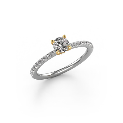 Der oben gezeigte Weißgold Verlobungsring wird Crystal RND 2 genannt. Es ist ein Pavé Solitär Ring, da er einen zentralen Edelstein und ein Band mit Pavé-Fassung hat. Der klassische Pavé Solitär Verlobungsring ist in der Kombination 14 Karat Weißgold mit Gold und ist mit einem rund 0.40 crt Diamant-Mittelstein besetzt und das Band hat eine Pavé-Fassung mit Lab grown Diamant. Jedes Schmuckstück ist einzigartig in jeder Hinsicht! Einfach nach Ihren Wünschen anzupassen. Um den zentralen Stein noch mehr zu betonen, hat das Band eine Pavé-Fassung mit weiteren Diamant. Durch die offenen Krappen kann das Licht aus mehreren Winkeln auf den Diamant treffen und der Diamant-Ring funkelt noch mehr. Das obere Foto zeigt die leidenschaftlich handgefertigten Details des Rings. Die hohe Positionierung der Mittelstein ist ein echter Blickfang. Der perfekte Verlobungsring für das Kronjuwel Ihres Lebens!Nachdem Sie Ihre Bestellung aufgegeben haben, beginnen unsere Goldschmiede mit dem kreativen Prozess der Herstellung Ihres Crystal RND 2 Verlobungsring. Wir haben keine Lager. Das ist vorteilhaft, da diese Kosten nicht an Sie weitergegeben werden. Daher sind wir in der Lage, Schmuck zu außergewöhnlich niedrigen Preisen anzubieten.Verschiedene Arten von neuen Ringen werden täglich von unserem Team angefertigt. Vielleicht haben Sie irgendwo einen Pavé Solitär Verlobungsring gefunden. Einen, den Sie Ihrem Liebsten schenken möchten. Bitte zögern Sie nicht, unseren Schmuckdesignern Ihre Gedanken und Ihr Design zu zeigen. Wir würden gerne Ihr Design in einen klassische Verlobungsring verwandeln. Sie können die Entwicklungen Ihres Ringdesigns verfolgen, da wir sehr detaillierte 3D-Zeichnungen verwenden. Darüber hinaus können Sie einen Dummy des Designs bestellen. Ein Dummy ist ein Kunststoffring, der nach Ihrem Ringdesign gestaltet werden kann. Sie können ihn anprobieren und prüfen, ob der Verlobungsring Ihren Vorstellungen entspricht. Wir senden Ihnen gerne ein unverbindliches Angebot zu einem fairen Preis/Leistungsverhältnis. Das Angebot wird Sie angesichts der Qualität des Rings und der Edelsteine verblüffen.Um es einfacher zu machen, bieten wir eine kostenlose 30-tägige Rücksendung.