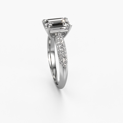 Der oben gezeigte Weißgold Verlobungsring wird Morane EME genannt. Es ist ein Pavé Solitär Ring, da er einen zentralen Edelstein und ein Band mit Pavé-Fassung hat. Der einzigartige Pavé Solitär Verlobungsring ist in der Kombination 14 Karat Weißgold mit Weißgold und ist mit einem smaragd schliff 1.75 crt Diamant-Mittelstein besetzt und das Band hat eine Pavé-Fassung mit Lab grown Diamant. Jedes Schmuckstück wird von unseren Meister-Goldschmieden in unserem eigenen Studio für Sie gefertigt. Um den zentralen Stein noch mehr zu betonen, hat das Band eine Pavé-Fassung mit weiteren Diamant. Durch die offenen Krappen kann das Licht aus mehreren Winkeln auf den Diamant treffen und der Diamant-Ring funkelt noch mehr. Das obere Foto zeigt die leidenschaftlich handgefertigten Details des Rings. Die hohe Positionierung der Mittelstein ist ein echter Blickfang. Der perfekte Verlobungsring für das Kronjuwel Ihres Lebens!Nach Erhalt Ihrer Bestellung beginnen unsere Goldschmiede mit Leidenschaft den kreativen Prozess und fertigen Ihren Verlobungsring in unserem eigenen Studio. Da wir keine großen Lager haben, werden diese Kosten nicht an Sie weitergegeben. Unsere Preisgestaltung ist der Beweis dafür! Wir bieten Schmuck zum niedrigsten Preis, garantiert.Unser Team fügt unserer Online-Kollektion täglich neue Designs hinzu. Unsere Designer und Goldschmiede arbeiten zusammen, um das beste Design zu kreieren. Wir bemühen uns, eine vielfältige Kollektion von Schmuckstücken anzubieten. Vielleicht haben Sie ein bestimmtes Design im Sinn. Eines, dass Sie irgendwo gesehen haben. Gerne geben wir Ihnen eine kostenlose Beratung. Wir machen Ihnen ein Angebot, basierend auf einem fairen Preis/Leistungsverhältnis, das Sie verblüffen wird.Um es einfacher zu machen, bieten wir eine kostenlose 30-tägige Rücksendung.