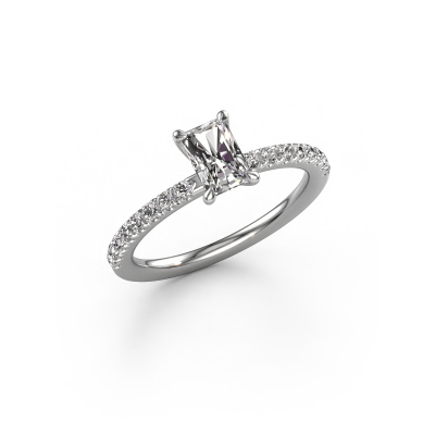 Der oben gezeigte Weißgold Verlobungsring wird Crystal RAD 2 genannt. Es ist ein Pavé Solitär Ring, da er einen zentralen Edelstein und ein Band mit Pavé-Fassung hat. Der Luxus Pavé Solitär Verlobungsring ist in der Kombination 14 Karat Weißgold mit Weißgold und ist mit einem radiant 0.65 crt Diamant-Mittelstein besetzt und das Band hat eine Pavé-Fassung mit Lab grown Diamant. Jedes Schmuckstück lässt Ihren Finger erstrahlen. Ihr Ring ist mit Liebe von unseren Goldschmieden handgefertigt. Um den zentralen Stein noch mehr zu betonen, hat das Band eine Pavé-Fassung mit weiteren Diamant. Durch die offenen Krappen kann das Licht aus mehreren Winkeln auf den Diamant treffen und der Diamant-Ring funkelt noch mehr. Das obere Foto zeigt die leidenschaftlich handgefertigten Details des Rings. Die hohe Positionierung der Mittelstein ist ein echter Blickfang. Der perfekte Verlobungsring für das Kronjuwel Ihres Lebens!Durch die Kombination modernster Technik mit uralter Handwerkskunst können wir alle Verlobungsringe in unserem eigenen Studio anfertigen. Jedes Schmuckstück wird auf Anfrage gefertigt. Das ist vorteilhaft, weil wir Ihnen dadurch einen Preis anbieten können, den Sie nirgendwo anders finden.Unsere Designer und Goldschmiede arbeiten jeden Tag zusammen und versuchen, neue Schmuckstücke zu kreieren. Vielleicht haben Sie irgendwo einen schönen, Luxus Verlobungsring gefunden, nach dem Ihr einzigartiger Ring gestaltet werden kann. Setzen Sie sich mit uns in Verbindung. Wir machen Ihnen ein Angebot, basierend auf einem fairen Preis/Leistungsverhältnis, das Sie begeistern wird.Um es einfacher zu machen, bieten wir eine kostenlose 30-tägige Rücksendung.