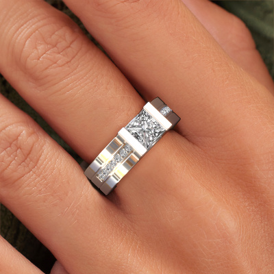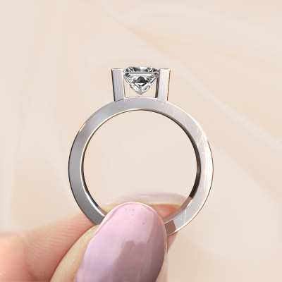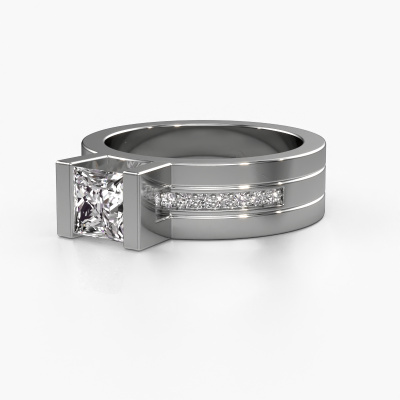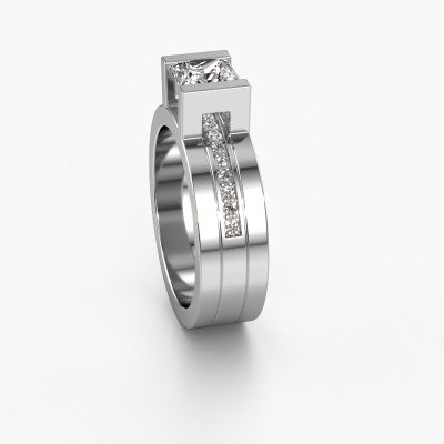 Der oben gezeigte Weißgold Verlobungsring wird Desire genannt. Es ist ein Pavé Solitär Ring, da er einen zentralen Edelstein und ein Band mit Pavé-Fassung hat. Der moderne Pavé Solitär Verlobungsring ist in der Kombination 14 Karat Weißgold mit Weißgold und ist mit einem princess 1.00 crt Diamant-Mittelstein besetzt und das Band hat eine Pavé-Fassung mit Diamanten. Jedes Schmuckstück wird von unseren Meister-Goldschmieden in unserem eigenen Studio für Sie gefertigt. Um den zentralen Stein noch mehr zu betonen, hat das Band eine Pavé-Fassung mit weiteren Diamant. Durch die offenen Krappen kann das Licht aus mehreren Winkeln auf den Diamant treffen und der Diamant-Ring funkelt noch mehr. Das obere Foto zeigt die leidenschaftlich handgefertigten Details des Rings. Die hohe Positionierung der Mittelstein ist ein echter Blickfang. Der perfekte Verlobungsring für das Kronjuwel Ihres Lebens!Durch die Kombination modernster Technik mit uralter Handwerkskunst können wir alle Verlobungsringe in unserem eigenen Studio anfertigen. Jedes Schmuckstück wird auf Anfrage gefertigt. Das ist vorteilhaft, weil wir Ihnen dadurch einen Preis anbieten können, den Sie nirgendwo anders finden.Haben Sie irgendwo einen bestimmten Verlobungsring gefunden, den Sie Ihrem Liebsten schenken möchten? Sie können uns gerne sagen, was Sie wollen und wir werden Ihr Design in einen Einzigartigen moderne Verlobungsring verwandeln. Sie können die Entwicklungen Ihres Ringdesigns verfolgen, da wir 3D-Zeichnungen verwenden. Das gibt Ihnen eine realistische Vorschau, wie Ihr Design aussehen wird. Sie können auch einen Dummy vorbestellen. Ein Dummy ist ein Kunststoffring, der nach Ihrem Ringdesign gestaltet werden kann. Sie können ihn anprobieren und prüfen, ob seine Breite und Größe für Sie geeignet sind. Wir senden Ihnen gerne ein unverbindliches Angebot zu einem fairen Preis/Leistungsverhältnis. Sie werden in Anbetracht der Qualität des Rings und der Edelsteine überrascht sein.Um es einfacher zu machen, bieten wir eine kostenlose 30-tägige Rücksendung.