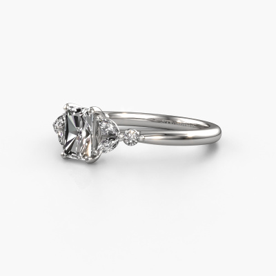Der oben gezeigte Ring wird Megan RAD genannt. Es ist ein Pavé Solitär Ring, da er einen zentralen Edelstein und ein Band mit Pavé-Fassung hat. Dieser 14 Karat Weißgold ring ist mit einem 0.65 crt radiant Diamant-Mittelstein besetzt und das Band hat eine Pavé-Fassung mit Lab grown Diamant. Jedes Schmuckstück wird hergestellt mit Leidenschaft und Liebe, von einem unserer Meister-Goldschmiede.Dieser traditionell Weißgold Pavé Solitär Verlobungsring mit Pavé-Fassung hat einen exquisiten, radiant Diamant als Mittelstein. Um den zentralen Stein noch mehr zu betonen, hat das Band eine Pavé-Fassung mit weiteren Lab grown Diamant. Durch die offenen Krappen kann das Licht aus mehreren Winkeln auf den Diamant treffen und der Diamant-Ring funkelt noch mehr. Das obere Foto zeigt die leidenschaftlich handgefertigten Details des Rings. Die hohe Positionierung der Mittelstein ist ein echter Blickfang. Der perfekte Verlobungsring für das Kronjuwel Ihres Lebens!Mit unserer modernen Technik können wir Schmuckstücke von höchster Qualität mit größter Sorgfalt für Sie entwerfen und anpassen. Unsere Verlobungsringe sind immer um 30 Prozent günstiger als bei anderen Juwelieren. Wir fertigen Verlobungsringe auf Bestellung, also müssen wir keine großen Lager unterhalten. Wenn Sie ein bestimmtes Budget haben, beraten wir Sie gerne entsprechend.Unser Team fügt unserer Online-Kollektion täglich neue Designs hinzu. Unsere Designer und Goldschmiede arbeiten zusammen, um das beste Design zu kreieren. Wir bemühen uns, eine vielfältige Kollektion von Schmuckstücken anzubieten. Vielleicht haben Sie ein bestimmtes Design im Sinn. Eines, dass Sie irgendwo gesehen haben. Gerne geben wir Ihnen eine kostenlose Beratung. Wir machen Ihnen ein Angebot, basierend auf einem fairen Preis/Leistungsverhältnis, das Sie verblüffen wird.Um es einfacher zu machen, bieten wir eine kostenlose 30-tägige Rücksendung.