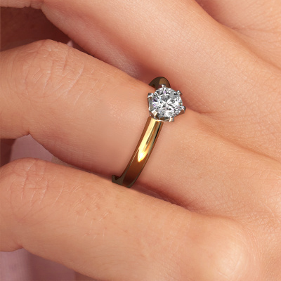 Der oben gezeigte Verlobungsring wird Tiffy 1 genannt. Wir nennen das einen Solitär-Ring, denn er hat einen einzelnen Edelstein. Es ist ein 14 Karat Gold ring, mit 0.50 crt rund Diamant. Das Besondere an unserem Konfigurator ist dass Sie selbst einem Schmuckstück zusammenstellen können zu einem eigenen persönlichen Schmuckstück. Dieser Solitäre Verlobungsring ist gefertigt in der Edelmetall Kombination Gold mit Weißgold, aber Sie können also auch wählen aus anderen Farben. Jedes Schmuckstück wird nur für Sie persönlich hergestellt, mit Liebe zum Detail und Design. Der Solitär-Verlobungsring ist eine Sonderform des Verlobungsring. Seine offenen Krappen ermöglichen, dass Licht aus mehr Winkeln auf den Edelstein trifft. Dieser klassische Verlobungsring ist durch die hohe Positionierung des Edelsteins ein atemberaubender Blickfang. Wir schmücken diesen Solitär-Ring sorgfältig von Hand, damit Sie Ihren Anfrage mit einem einzigartigen Ring würdigen können. Die Liebe Ihres Lebens verdient nur das Beste. Mit unserer modernen Technik können wir Schmuckstücke von höchster Qualität mit größter Sorgfalt für Sie entwerfen und anpassen. Unsere Verlobungsringe sind immer um 30 Prozent günstiger als bei anderen Juwelieren. Wir fertigen Verlobungsringe auf Bestellung, also müssen wir keine großen Lager unterhalten. Wenn Sie ein bestimmtes Budget haben, beraten wir Sie gerne entsprechend.Unsere Designer und Goldschmiede arbeiten jeden Tag zusammen und versuchen, neue Schmuckstücke zu kreieren. Vielleicht haben Sie irgendwo einen schönen, klassische Verlobungsring gefunden, nach dem Ihr einzigartiger Ring gestaltet werden kann. Setzen Sie sich mit uns in Verbindung. Wir machen Ihnen ein Angebot, basierend auf einem fairen Preis/Leistungsverhältnis, das Sie begeistern wird.Um es einfacher zu machen, bieten wir eine kostenlose 30-tägige Rücksendung.