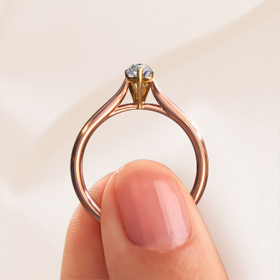 Der oben gezeigte Verlobungsring wird Mignon per 1 genannt. Wir nennen das einen Solitär-Ring, denn er hat einen einzelnen Edelstein. Es ist ein 14 Karat Roségold ring, mit 0.45 crt tropfen Diamant. Das Besondere an unserem Konfigurator ist dass Sie selbst einem Schmuckstück zusammenstellen können zu einem eigenen persönlichen Schmuckstück. Dieser Solitäre Verlobungsring ist gefertigt in der Edelmetall Kombination Roségold mit Gold, aber Sie können also auch wählen aus anderen Farben. Jedes Schmuckstück ist um Ihrem Finger Glanz zu verleihen. Jeder Ring wird von unseren Goldschmieden liebevoll von Hand gefertigt. Der Solitär-Verlobungsring ist eine Sonderform des Verlobungsring. Seine offenen Krappen ermöglichen, dass Licht aus mehr Winkeln auf den Edelstein trifft. Dieser klassische Verlobungsring ist durch die hohe Positionierung des Edelsteins ein atemberaubender Blickfang. Wir schmücken diesen Solitär-Ring sorgfältig von Hand, damit Sie Ihren Anfrage mit einem einzigartigen Ring würdigen können. Die Liebe Ihres Lebens verdient nur das Beste. Nachdem Sie Ihre Bestellung aufgegeben haben, beginnen unsere Goldschmiede mit dem kreativen Prozess der Herstellung Ihres Mignon per 1 Verlobungsring. Wir haben keine Lager. Das ist vorteilhaft, da diese Kosten nicht an Sie weitergegeben werden. Daher sind wir in der Lage, Schmuck zu außergewöhnlich niedrigen Preisen anzubieten.Unser Team fügt unserer Online-Kollektion täglich neue Designs hinzu. Unsere Designer und Goldschmiede arbeiten zusammen, um das beste Design zu kreieren. Wir bemühen uns, eine vielfältige Kollektion von Schmuckstücken anzubieten. Vielleicht haben Sie ein bestimmtes Design im Sinn. Eines, dass Sie irgendwo gesehen haben. Gerne geben wir Ihnen eine kostenlose Beratung. Wir machen Ihnen ein Angebot, basierend auf einem fairen Preis/Leistungsverhältnis, das Sie verblüffen wird.Um es einfacher zu machen, bieten wir eine kostenlose 30-tägige Rücksendung.