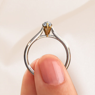 Der oben gezeigte Verlobungsring wird Mignon per 1 genannt. Wir nennen das einen Solitär-Ring, denn er hat einen einzelnen Edelstein. Es ist ein 14 Karat Weißgold ring, mit 0.45 crt tropfen Diamant. Das Besondere an unserem Konfigurator ist dass Sie selbst einem Schmuckstück zusammenstellen können zu einem eigenen persönlichen Schmuckstück. Dieser Solitäre Verlobungsring ist gefertigt in der Edelmetall Kombination Weißgold mit Gold, aber Sie können also auch wählen aus anderen Farben. Jedes Schmuckstück ist um Ihrem Finger Glanz zu verleihen. Jeder Ring wird von unseren Goldschmieden liebevoll von Hand gefertigt. Der Solitär-Verlobungsring ist eine Sonderform des Verlobungsring. Seine offenen Krappen ermöglichen, dass Licht aus mehr Winkeln auf den Edelstein trifft. Dieser klassische Verlobungsring ist durch die hohe Positionierung des Edelsteins ein atemberaubender Blickfang. Wir schmücken diesen Solitär-Ring sorgfältig von Hand, damit Sie Ihren Anfrage mit einem einzigartigen Ring würdigen können. Die Liebe Ihres Lebens verdient nur das Beste. Nachdem Sie Ihre Bestellung aufgegeben haben, beginnen unsere Goldschmiede mit dem kreativen Prozess der Herstellung Ihres Mignon per 1 Verlobungsring. Wir haben keine Lager. Das ist vorteilhaft, da diese Kosten nicht an Sie weitergegeben werden. Daher sind wir in der Lage, Schmuck zu außergewöhnlich niedrigen Preisen anzubieten.Unser Team fügt unserer Online-Kollektion täglich neue Designs hinzu. Unsere Designer und Goldschmiede arbeiten zusammen, um das beste Design zu kreieren. Wir bemühen uns, eine vielfältige Kollektion von Schmuckstücken anzubieten. Vielleicht haben Sie ein bestimmtes Design im Sinn. Eines, dass Sie irgendwo gesehen haben. Gerne geben wir Ihnen eine kostenlose Beratung. Wir machen Ihnen ein Angebot, basierend auf einem fairen Preis/Leistungsverhältnis, das Sie verblüffen wird.Um es einfacher zu machen, bieten wir eine kostenlose 30-tägige Rücksendung.