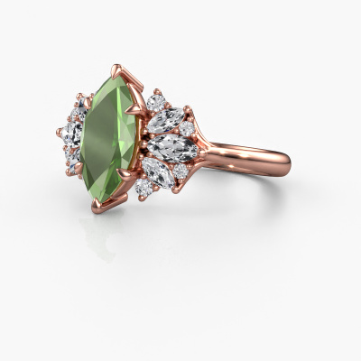 Dieser Verlobungsring aus 14 Karat Roségold heißt Jaimie. Sind Sie auf der Suche nach einem einzigartige, Roségold Verlobungsring mit Turmalin grün 12x6 mm, den Sie nach Ihren Wünschen gestalten können? Dieser einzigartige Verlobungsring ist mit Turmalin grün besetzt, der sorgfältig für diesen speziellen Ring ausgewählt wurde, um den besten Effekt zu erzielen. Unser erfahrener Juwelier kreiert Ihren Ring in unserem eigenen Studio eine Etage tiefer, wo der Turmalin grün mit großer Sorgfalt eingefasst wird. Der Ring wird dann bearbeitet und poliert, bis er perfekt ist. Nichts als das Beste für die Liebe Ihres Lebens! Das Besondere an unserem Konfigurator ist dass Sie selbst einem Schmuckstück zusammenstellen können zu einem eigenen persönlichen Schmuckstück. Jedes Schmuckstück wird von unseren Meister-Goldschmieden in unserem eigenen Studio für Sie gefertigt.. Durch die Kombination modernster Technik mit uralter Handwerkskunst können wir alle Verlobungsringe in unserem eigenen Studio anfertigen. Jedes Schmuckstück wird auf Anfrage gefertigt. Das ist vorteilhaft, weil wir Ihnen dadurch einen Preis anbieten können, den Sie nirgendwo anders finden.Haben Sie irgendwo einen bestimmten Verlobungsring gefunden, den Sie Ihrem Liebsten schenken möchten? Sie können uns gerne sagen, was Sie wollen und wir werden Ihr Design in einen Einzigartigen einzigartige Verlobungsring verwandeln. Sie können die Entwicklungen Ihres Ringdesigns verfolgen, da wir 3D-Zeichnungen verwenden. Das gibt Ihnen eine realistische Vorschau, wie Ihr Design aussehen wird. Sie können auch einen Dummy vorbestellen. Ein Dummy ist ein Kunststoffring, der nach Ihrem Ringdesign gestaltet werden kann. Sie können ihn anprobieren und prüfen, ob seine Breite und Größe für Sie geeignet sind. Wir senden Ihnen gerne ein unverbindliches Angebot zu einem fairen Preis/Leistungsverhältnis. Sie werden in Anbetracht der Qualität des Rings und der Edelsteine überrascht sein.Um es einfacher zu machen, bieten wir eine kostenlose 30-tägige Rücksendung.