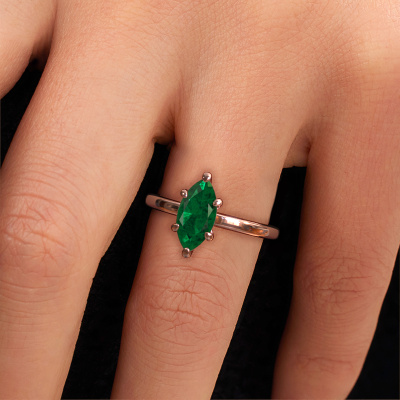 Dieser Verlobungsring aus 14 Karat Roségold heißt Simone MRQ 1. Sind Sie auf der Suche nach einem einzigartige, Roségold Verlobungsring mit Smaragd 11x5.5 mm, den Sie nach Ihren Wünschen gestalten können? Dieser einzigartige Verlobungsring ist mit Smaragd besetzt, der sorgfältig für diesen speziellen Ring ausgewählt wurde, um den besten Effekt zu erzielen. Unser erfahrener Juwelier kreiert Ihren Ring in unserem eigenen Studio eine Etage tiefer, wo der Smaragd mit großer Sorgfalt eingefasst wird. Der Ring wird dann bearbeitet und poliert, bis er perfekt ist. Nichts als das Beste für die Liebe Ihres Lebens! Das Besondere an unserem Konfigurator ist dass Sie selbst einem Schmuckstück zusammenstellen können zu einem eigenen persönlichen Schmuckstück. Jedes Schmuckstück wird von unseren Meister-Goldschmieden in unserem eigenen Studio für Sie gefertigt.. Da wir unsere eigenen Ringe entwerfen und liefern, können wir Ihnen einen Verlobungsring zu einem Preis anbieten, den Sie nirgendwo anders finden. Ein Ring wird auf Bestellung angefertigt, wodurch kein überschüssiges Material anfällt. So können wir Ihnen ein gutes Angebot zum besten Preis machen. Wir verstehen, dass es sich riskant anfühlt, Ihren Verlobungsring online zu kaufen. Jedoch helfen wir Ihnen gerne beim Designprozess unter Berücksichtigung Ihres Budgets.Unsere Designer und Goldschmiede arbeiten jeden Tag zusammen und versuchen, neue Schmuckstücke zu kreieren. Vielleicht haben Sie irgendwo einen schönen, einzigartige Verlobungsring gefunden, nach dem Ihr einzigartiger Ring gestaltet werden kann. Setzen Sie sich mit uns in Verbindung. Wir machen Ihnen ein Angebot, basierend auf einem fairen Preis/Leistungsverhältnis, das Sie begeistern wird.Um es einfacher zu machen, bieten wir eine kostenlose 30-tägige Rücksendung.