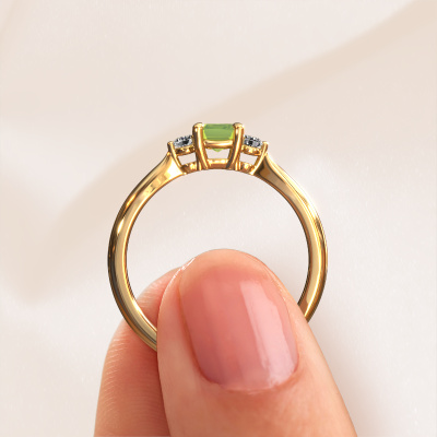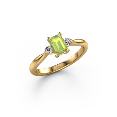 Dieser Verlobungsring aus 14 Karat Gold heißt Lieselot EME. Sind Sie auf der Suche nach einem exklusive, Gold Verlobungsring mit Peridot 6x4 mm, den Sie nach Ihren Wünschen gestalten können? Dieser exklusive Verlobungsring ist mit Peridot besetzt, der sorgfältig für diesen speziellen Ring ausgewählt wurde, um den besten Effekt zu erzielen. Unser erfahrener Juwelier kreiert Ihren Ring in unserem eigenen Studio eine Etage tiefer, wo der Peridot mit großer Sorgfalt eingefasst wird. Der Ring wird dann bearbeitet und poliert, bis er perfekt ist. Nichts als das Beste für die Liebe Ihres Lebens! Das Besondere an unserem Konfigurator ist dass Sie selbst einem Schmuckstück zusammenstellen können zu einem eigenen persönlichen Schmuckstück. Jedes Schmuckstück wird nur für Sie persönlich hergestellt, mit Liebe zum Detail und Design.. Nachdem Sie Ihre Bestellung aufgegeben haben, beginnen unsere Goldschmiede mit dem kreativen Prozess der Herstellung Ihres Lieselot EME Verlobungsring. Wir haben keine Lager. Das ist vorteilhaft, da diese Kosten nicht an Sie weitergegeben werden. Daher sind wir in der Lage, Schmuck zu außergewöhnlich niedrigen Preisen anzubieten.Verschiedene Arten von neuen Ringen werden täglich von unserem Team angefertigt. Vielleicht haben Sie irgendwo einen 3-stone Verlobungsring gefunden. Einen, den Sie Ihrem Liebsten schenken möchten. Bitte zögern Sie nicht, unseren Schmuckdesignern Ihre Gedanken und Ihr Design zu zeigen. Wir würden gerne Ihr Design in einen exklusive Verlobungsring verwandeln. Sie können die Entwicklungen Ihres Ringdesigns verfolgen, da wir sehr detaillierte 3D-Zeichnungen verwenden. Darüber hinaus können Sie einen Dummy des Designs bestellen. Ein Dummy ist ein Kunststoffring, der nach Ihrem Ringdesign gestaltet werden kann. Sie können ihn anprobieren und prüfen, ob der Verlobungsring Ihren Vorstellungen entspricht. Wir senden Ihnen gerne ein unverbindliches Angebot zu einem fairen Preis/Leistungsverhältnis. Das Angebot wird Sie angesichts der Qualität des Rings und der Edelsteine verblüffen.Um es einfacher zu machen, bieten wir eine kostenlose 30-tägige Rücksendung.