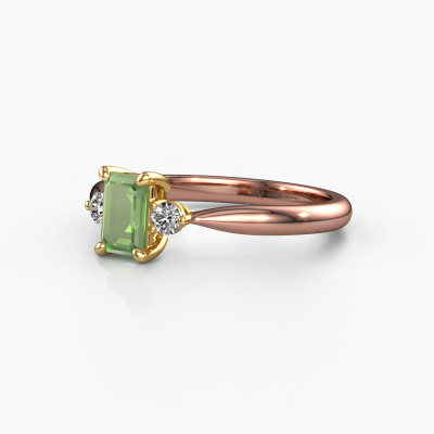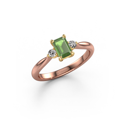 Dieser Verlobungsring aus 14 Karat Roségold heißt Lieselot EME. Sind Sie auf der Suche nach einem exklusive, Roségold Verlobungsring mit Turmalin grün 6x4 mm, den Sie nach Ihren Wünschen gestalten können? Dieser exklusive Verlobungsring ist mit Turmalin grün besetzt, der sorgfältig für diesen speziellen Ring ausgewählt wurde, um den besten Effekt zu erzielen. Unser erfahrener Juwelier kreiert Ihren Ring in unserem eigenen Studio eine Etage tiefer, wo der Turmalin grün mit großer Sorgfalt eingefasst wird. Der Ring wird dann bearbeitet und poliert, bis er perfekt ist. Nichts als das Beste für die Liebe Ihres Lebens! Das Besondere an unserem Konfigurator ist dass Sie selbst einem Schmuckstück zusammenstellen können zu einem eigenen persönlichen Schmuckstück. Jedes Schmuckstück wird nur für Sie persönlich hergestellt, mit Liebe zum Detail und Design.. Nachdem Sie Ihre Bestellung aufgegeben haben, beginnen unsere Goldschmiede mit dem kreativen Prozess der Herstellung Ihres Lieselot EME Verlobungsring. Wir haben keine Lager. Das ist vorteilhaft, da diese Kosten nicht an Sie weitergegeben werden. Daher sind wir in der Lage, Schmuck zu außergewöhnlich niedrigen Preisen anzubieten.Verschiedene Arten von neuen Ringen werden täglich von unserem Team angefertigt. Vielleicht haben Sie irgendwo einen 3-stone Verlobungsring gefunden. Einen, den Sie Ihrem Liebsten schenken möchten. Bitte zögern Sie nicht, unseren Schmuckdesignern Ihre Gedanken und Ihr Design zu zeigen. Wir würden gerne Ihr Design in einen exklusive Verlobungsring verwandeln. Sie können die Entwicklungen Ihres Ringdesigns verfolgen, da wir sehr detaillierte 3D-Zeichnungen verwenden. Darüber hinaus können Sie einen Dummy des Designs bestellen. Ein Dummy ist ein Kunststoffring, der nach Ihrem Ringdesign gestaltet werden kann. Sie können ihn anprobieren und prüfen, ob der Verlobungsring Ihren Vorstellungen entspricht. Wir senden Ihnen gerne ein unverbindliches Angebot zu einem fairen Preis/Leistungsverhältnis. Das Angebot wird Sie angesichts der Qualität des Rings und der Edelsteine verblüffen.Um es einfacher zu machen, bieten wir eine kostenlose 30-tägige Rücksendung.