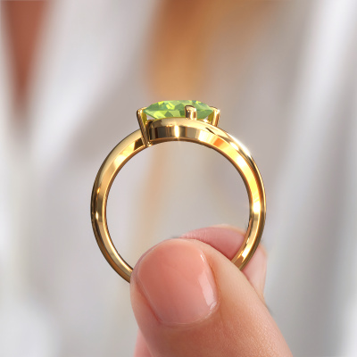 Dieser Verlobungsring aus 14 Karat Gold heißt Aida PER. Sind Sie auf der Suche nach einem Fantasie, Gold Verlobungsring mit Peridot 9x7 mm, den Sie nach Ihren Wünschen gestalten können? Dieser Fantasie Verlobungsring ist mit Peridot besetzt, der