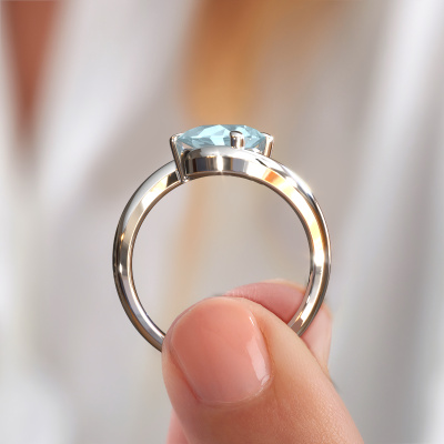 Dieser Verlobungsring aus 14 Karat Weißgold heißt Aida PER. Sind Sie auf der Suche nach einem Fantasie, Weißgold Verlobungsring mit Aquamarin 9x7 mm, den Sie nach Ihren Wünschen gestalten können? Dieser Fantasie Verlobungsring ist mit Aquamarin