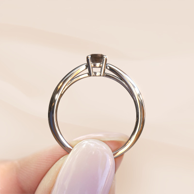 Der oben gezeigte Verlobungsring wird Nichole genannt. Wir nennen das einen Solitär-Ring, denn er hat einen einzelnen Edelstein. Es ist ein 14 Karat Weißgold Verlobungsring, mit 4.2 mm rund Rauchquarz. Dieser außergewöhnliche, Fantasie Weißgold Solitär-Verlobungsring mit einem schönen, rund Rauchquarz soll Ihrem Antrag ein Funkeln geben. Die offenen Krappen ermöglichen, dass Licht aus mehr Winkeln auf den Edelstein trifft. Wussten Sie, dass ein Rauchquarz für ewige Liebe und Treue steht? Das macht ihn zum perfekten Mittelstück. Unsere Goldschmiede positioniert den Edelstein Ihrer Wahl sorgfältig oben auf dem Ring. Dadurch sticht er hervor. Jedes Schmuckstück wird von unseren Meister-Goldschmieden in unserem eigenen Studio für Sie gefertigt.Nach Erhalt Ihrer Bestellung beginnen unsere Goldschmiede mit Leidenschaft den kreativen Prozess und fertigen Ihren Verlobungsring in unserem eigenen Studio. Da wir keine großen Lager haben, werden diese Kosten nicht an Sie weitergegeben. Unsere Preisgestaltung ist der Beweis dafür! Wir bieten Schmuck zum niedrigsten Preis, garantiert.Haben Sie einen bestimmten Ring im Sinn? Eines, dass Sie irgendwo gesehen haben. Bitte zögern Sie nicht, uns zu sagen, was Sie wollen und wir werden Ihr Design in einen Einzigartigen Verlobungsring verwandeln. Sie können die Entwicklungen Ihres Ringdesigns verfolgen, da wir 3D-Zeichnungen verwenden. Das gibt Ihnen eine realistische Vorschau Ihres Designs. Wir senden Ihnen gerne ein unverbindliches Angebot zu einem fairen Preis/Leistungsverhältnis. Es wird Sie erstaunen.Um es einfacher zu machen, bieten wir eine kostenlose 30-tägige Rücksendung.