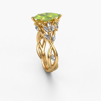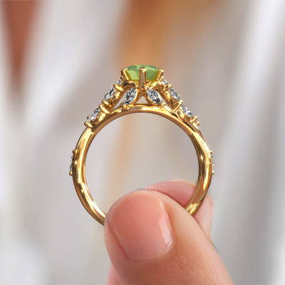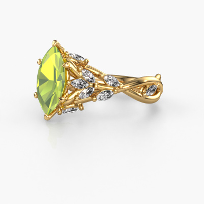 Dieser Ring aus 14 Karat Gold heißt Samantha MRQ und hat 11x5.5 mm Peridot. Dieser graziöse 14 Karat Gold Flower Verlobungsring ist ein wahres Kunstwerk! Die Ornamente werden mit viel Geduld und großer Leidenschaft gefertigt. Um diesen Ring mit großer Präzision zu schaffen, erfordert dieses Handwerk ein scharfes Auge und eine geschickte Hand. Eine Herausforderung, die bei unseren erfahrenen Juwelieren ein Feuer entfacht. Die exquisiten Peridot sind auf eine besondere Art und Weise gefasst, so dass sie noch mehr hervorstechen. Dies verleiht dem Ring eine noch glamourösere Erscheinung. Der Ring an sich ist schon wegen der Edelsteine einzigartig, die wir speziell für diesen Ring auswählen. Obendrein wählen Sie die Edelmetalle aus, mit denen Ihr einzigartiger Ring für die außergewöhnlichste Frau Ihres Lebens gemacht wird! Jedes Schmuckstück ist um Ihrem Finger Glanz zu verleihen. Jeder Ring wird von unseren Goldschmieden liebevoll von Hand gefertigt.Durch die Kombination modernster Technik mit uralter Handwerkskunst können wir alle Verlobungsringe in unserem eigenen Studio anfertigen. Jedes Schmuckstück wird auf Anfrage gefertigt. Das ist vorteilhaft, weil wir Ihnen dadurch einen Preis anbieten können, den Sie nirgendwo anders finden.Unser Team fügt unserer Online-Kollektion täglich neue Designs hinzu. Unsere Designer und Goldschmiede arbeiten zusammen, um das beste Design zu kreieren. Wir bemühen uns, eine vielfältige Kollektion von Schmuckstücken anzubieten. Vielleicht haben Sie ein bestimmtes Design im Sinn. Eines, dass Sie irgendwo gesehen haben. Gerne geben wir Ihnen eine kostenlose Beratung. Wir machen Ihnen ein Angebot, basierend auf einem fairen Preis/Leistungsverhältnis, das Sie verblüffen wird.Um es einfacher zu machen, bieten wir eine kostenlose 30-tägige Rücksendung.