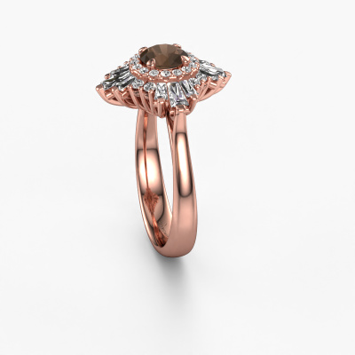 Dieser Verlobungsring aus 14 Karat Roségold heißt Thalia und hat einen 5.4 mm Rauchquarz. Ein außergewöhnlicher, Roségold Vintage Ring. Einer, der die Liebe Ihres Lebens mit Sicherheit wie ein Rauchquarz erstrahlen lässt! Das hoffen wir zu erreichen. Dieser Vintage Verlobungsring ist mit exquisiten Rauchquarz besetzt. Welchen Edelstein Sie aus unserer Auswahl haben möchten, liegt ganz bei Ihnen. Der Edelstein wird mit großer Sorgfalt ausgewählt. Denn wir glauben, dass Ihr besondere Verlobungsring nur mit dem schönsten Edelstein gekrönt sein darf. Sehen Sie das auch so? Unser erfahrener Juwelier entwirft Ihren Ring in unserem eigenen Studio, wo der Rauchquarz mit großer Präzision eingefasst wird. Der Ring wird dann bearbeitet und poliert, bis er perfekt ist. Nichts als das Beste für die Liebe Ihres Lebens! Jedes Schmuckstück wird hergestellt mit Leidenschaft und Liebe, von einem unserer Meister-Goldschmiede.Nach Erhalt Ihrer Bestellung beginnen unsere Goldschmiede mit Leidenschaft den kreativen Prozess und fertigen Ihren Verlobungsring in unserem eigenen Studio. Da wir keine großen Lager haben, werden diese Kosten nicht an Sie weitergegeben. Unsere Preisgestaltung ist der Beweis dafür! Wir bieten Schmuck zum niedrigsten Preis, garantiert.Haben Sie irgendwo einen bestimmten Verlobungsring gefunden, den Sie Ihrem Liebsten schenken möchten? Sie können uns gerne sagen, was Sie wollen und wir werden Ihr Design in einen Einzigartigen Vintage Verlobungsring verwandeln. Sie können die Entwicklungen Ihres Ringdesigns verfolgen, da wir 3D-Zeichnungen verwenden. Das gibt Ihnen eine realistische Vorschau, wie Ihr Design aussehen wird. Sie können auch einen Dummy vorbestellen. Ein Dummy ist ein Kunststoffring, der nach Ihrem Ringdesign gestaltet werden kann. Sie können ihn anprobieren und prüfen, ob seine Breite und Größe für Sie geeignet sind. Wir senden Ihnen gerne ein unverbindliches Angebot zu einem fairen Preis/Leistungsverhältnis. Sie werden in Anbetracht der Qualität des Rings und der Edelsteine überrascht sein.Um es einfacher zu machen, bieten wir eine kostenlose 30-tägige Rücksendung.
